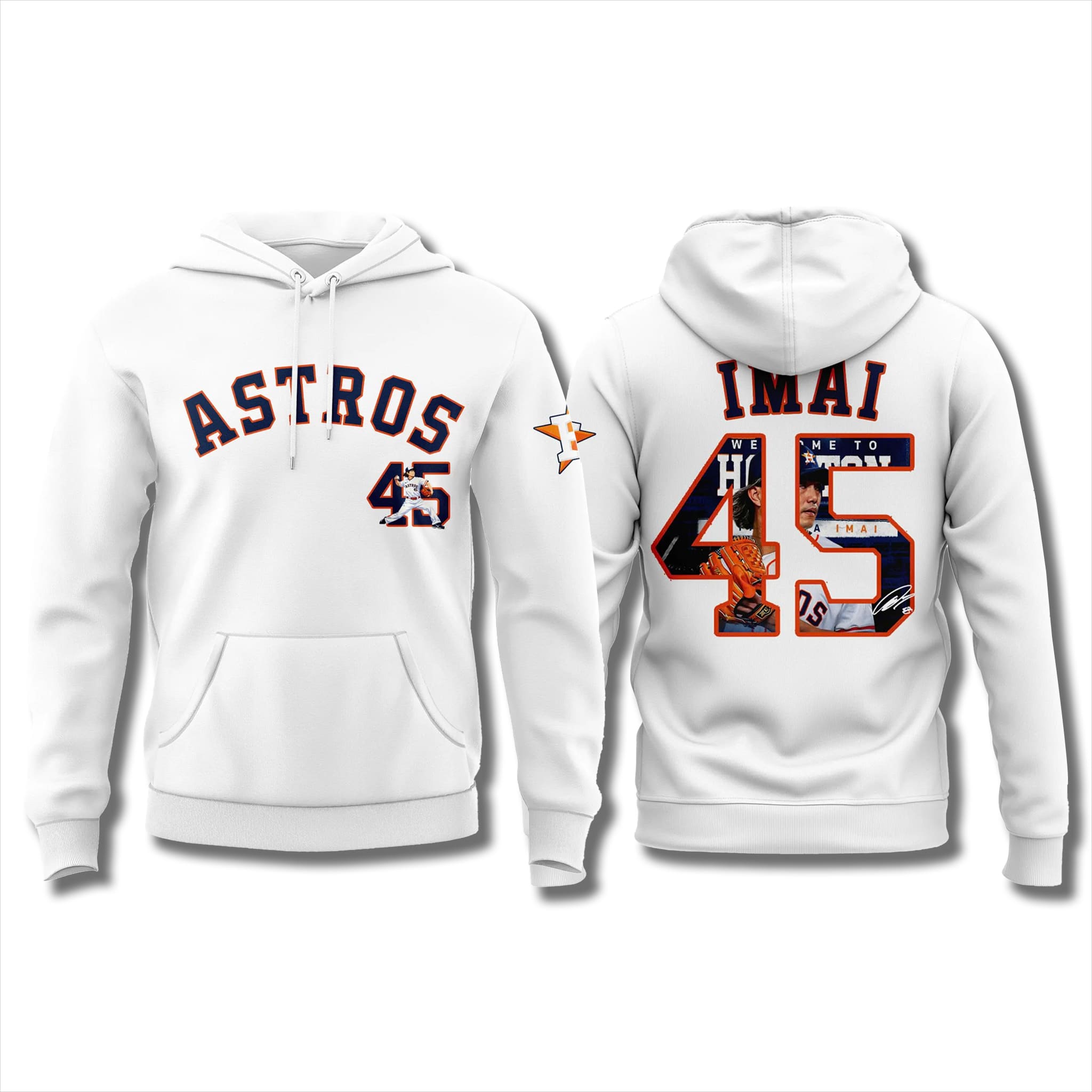 The Houston Astros Tatsuya Imai 45 Hoodie is a hot item for Houston Astros fans, honoring newcomer Tatsuya Imai – a talented Japanese right-hander who signed a 3-year contract with the team in early January 2026. Imai is expected to become a co-ace alongside Hunter Brown, helping the Astros rebound after an injury-plagued 2025 season and return to the postseason race. Jersey number 45 was chosen to both represent expectations and pay tribute to idols Gerrit Cole and Zack Wheeler – two elite aces.