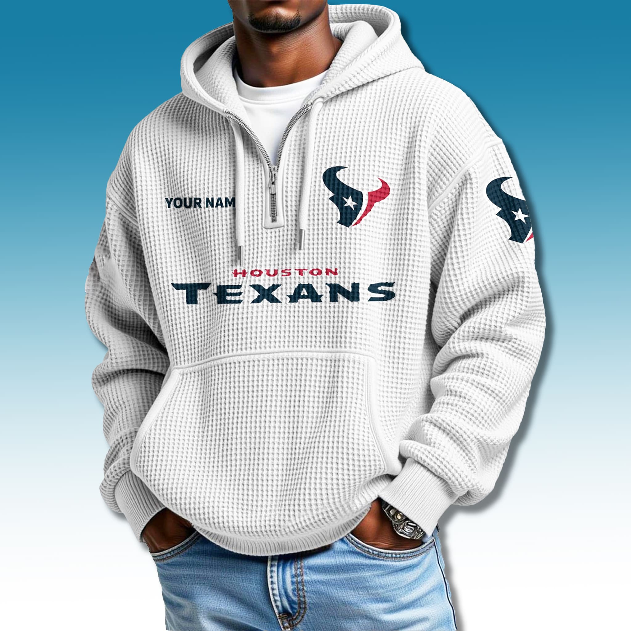 The Texans 2025 Custom Waffle Quarter Zip Hoodie is more than clothing – it’s a symbol of Texas pride and fighting spirit. Order today and stand strong with the Texans in unmatched comfort and style!