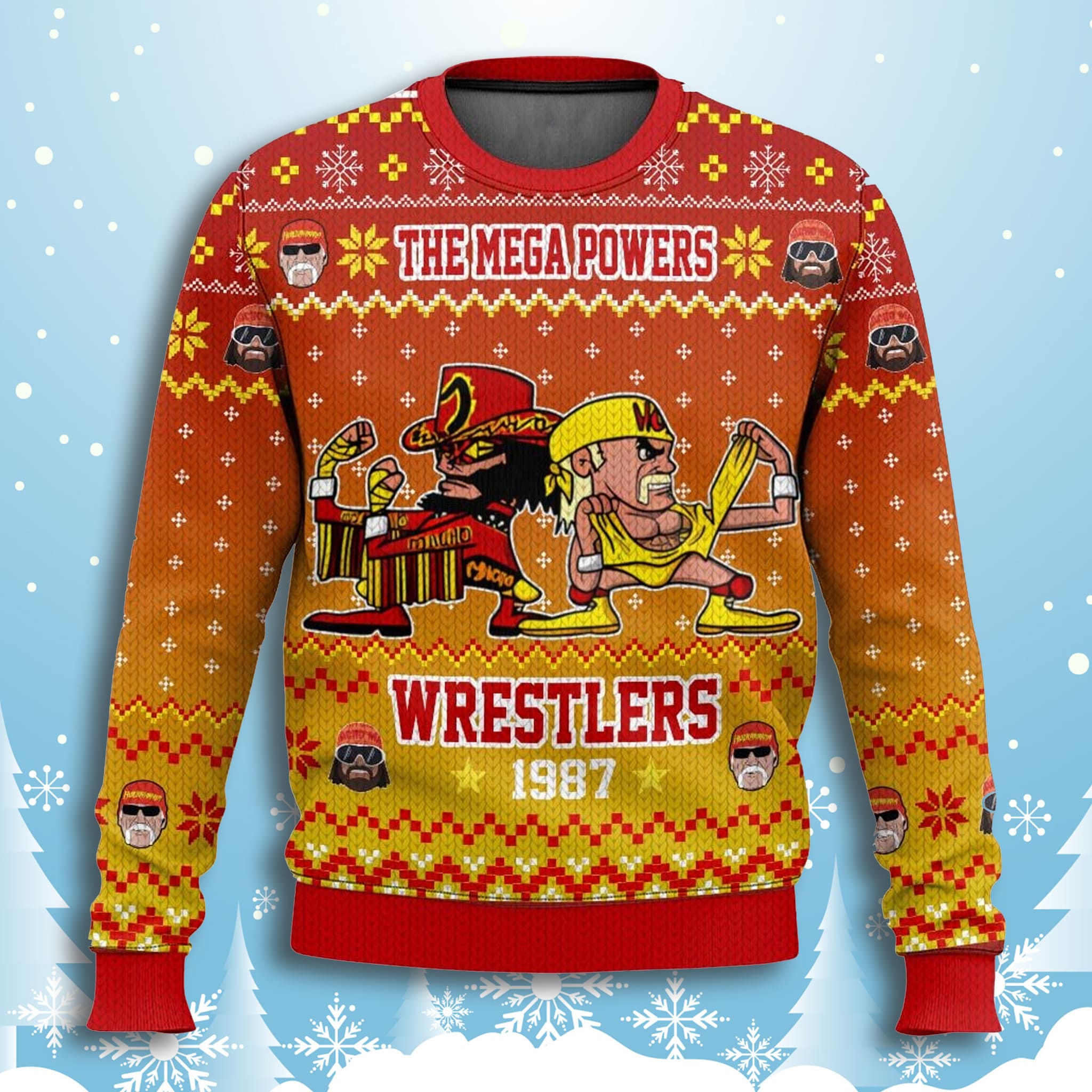 Don’t miss your chance to secure this piece of wrestling history! The The Mega Powers Wrestlers 1987 Ugly Sweater is the perfect way to pay homage to the greatest team-up ever and make a powerful entrance this holiday season.