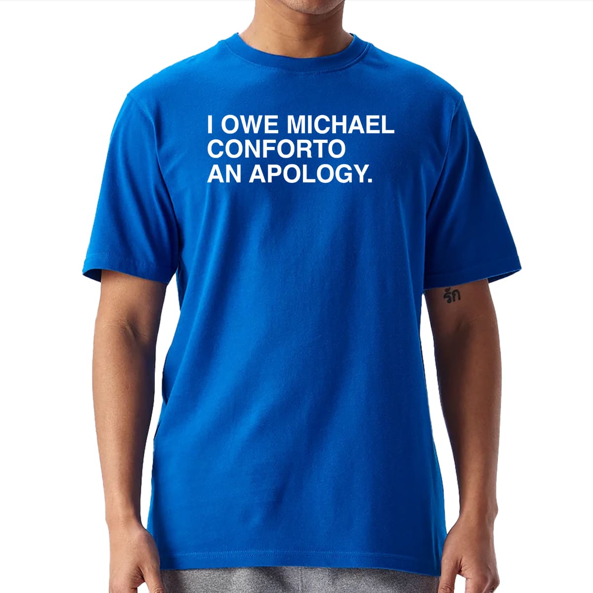 The I Owe Michael Conforto An Apology Shirt is a bright blue, humorous design for Cubs fans this season. The story behind the shirt comes from Michael Conforto signing a minor-league deal with the Cubs after a tough 2025 season with the Dodgers. Most Cubs fans were initially doubtful and critical of him. However, just a few weeks into the season, Conforto proved his value with disciplined hitting, strong plate selection, and consistent contributions in the outfield.