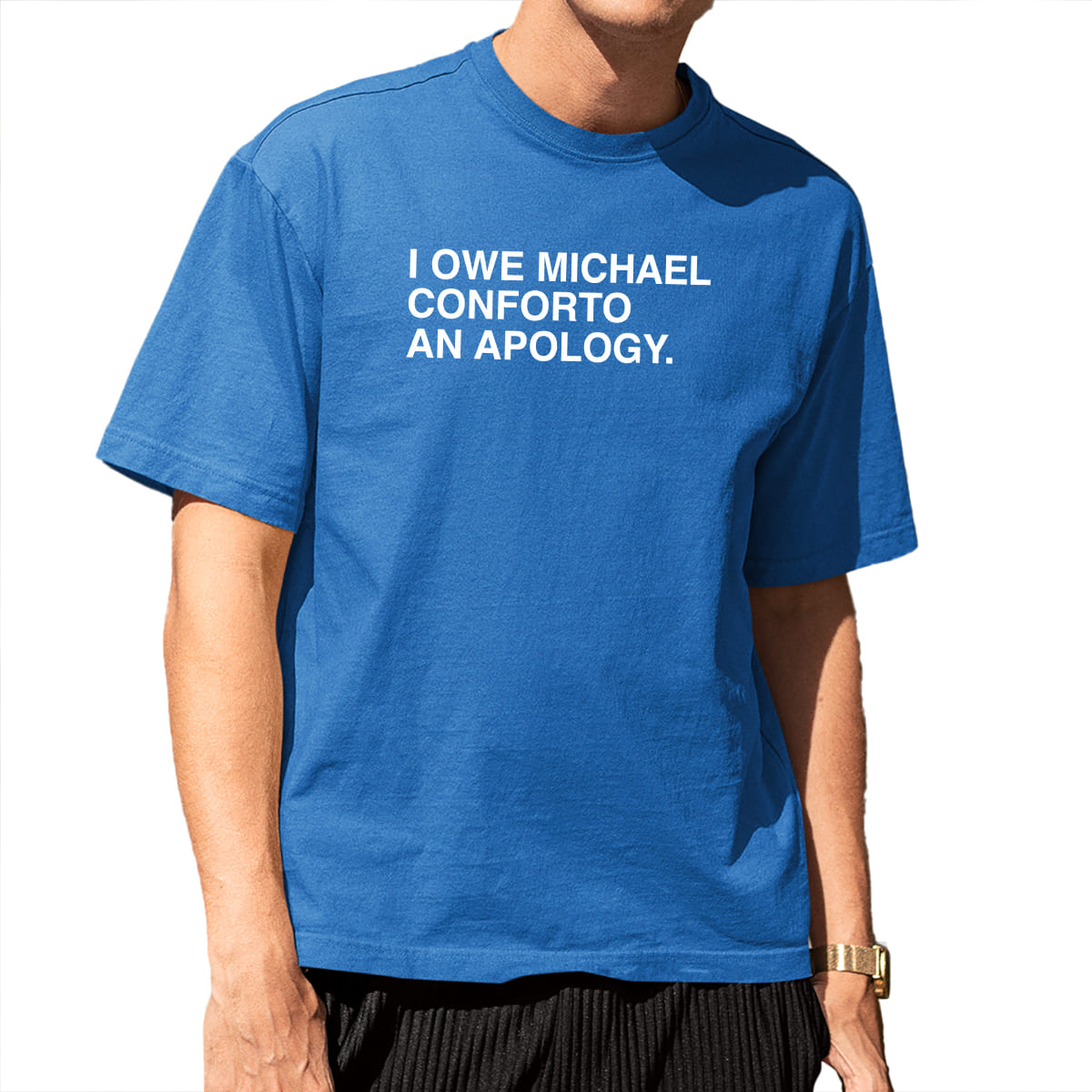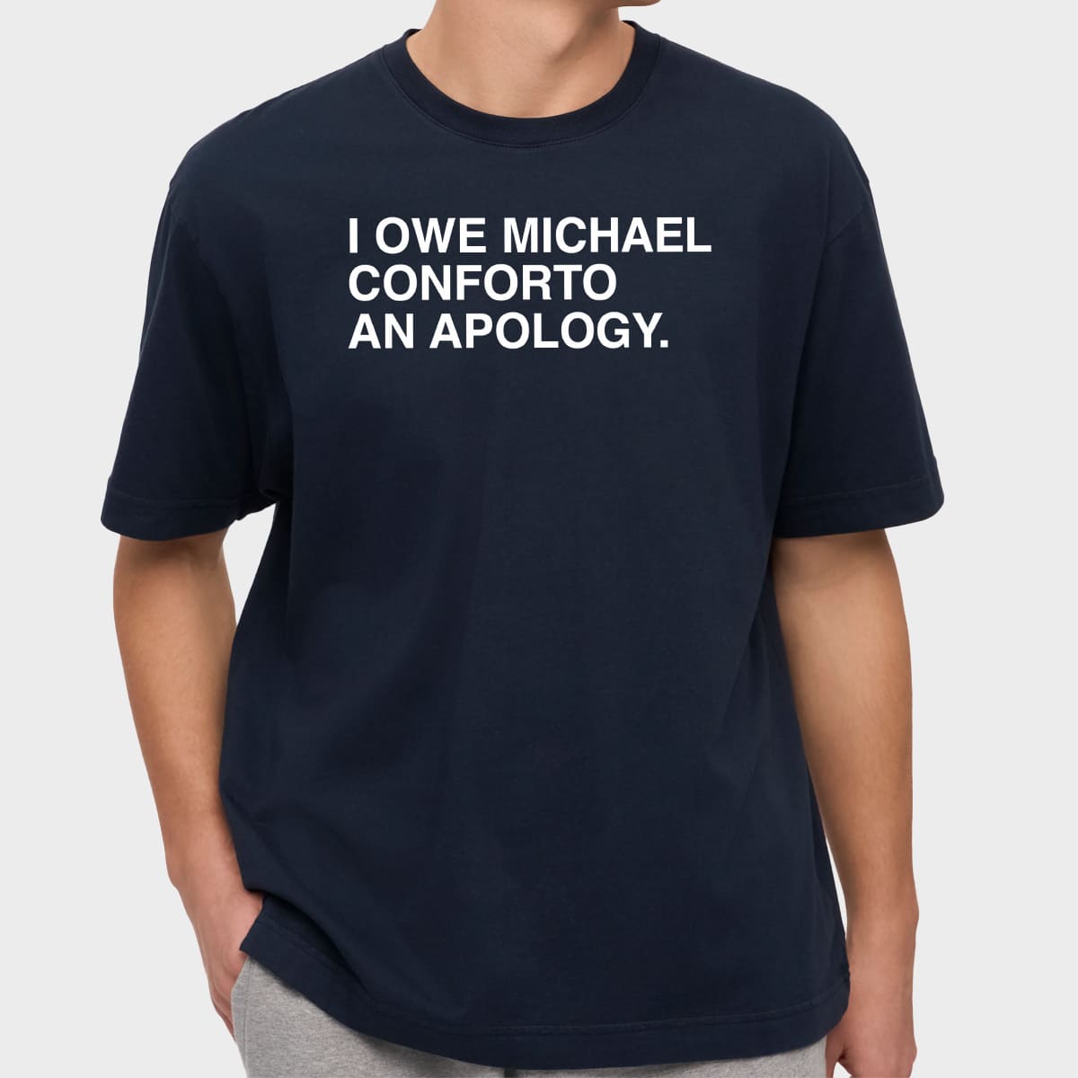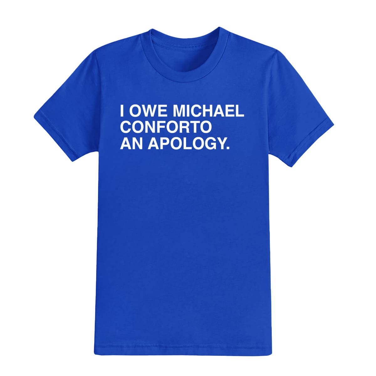The Cubs community on social media collectively began to “admit they were wrong,” and the meme “I owe Michael Conforto an apology” quickly went viral. The shirt is a fun way for fans to apologize while also showing support for the player in the uniquely humorous style of Chicago sports culture.