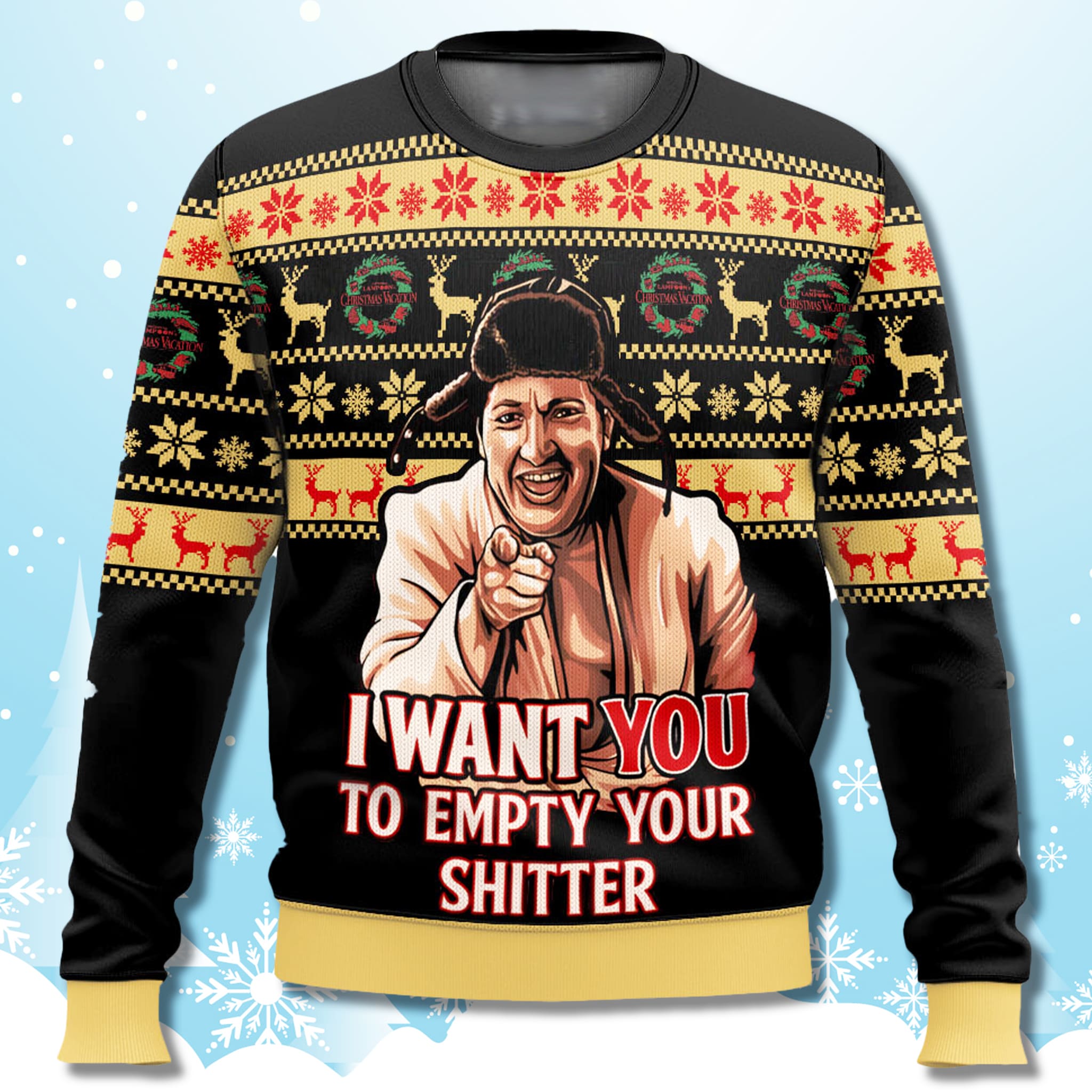 I Want You To Empty Your Shitter National Lampoon’s Vacation Christmas Ugly Sweater – Cousin Eddie Classic Quote Edition