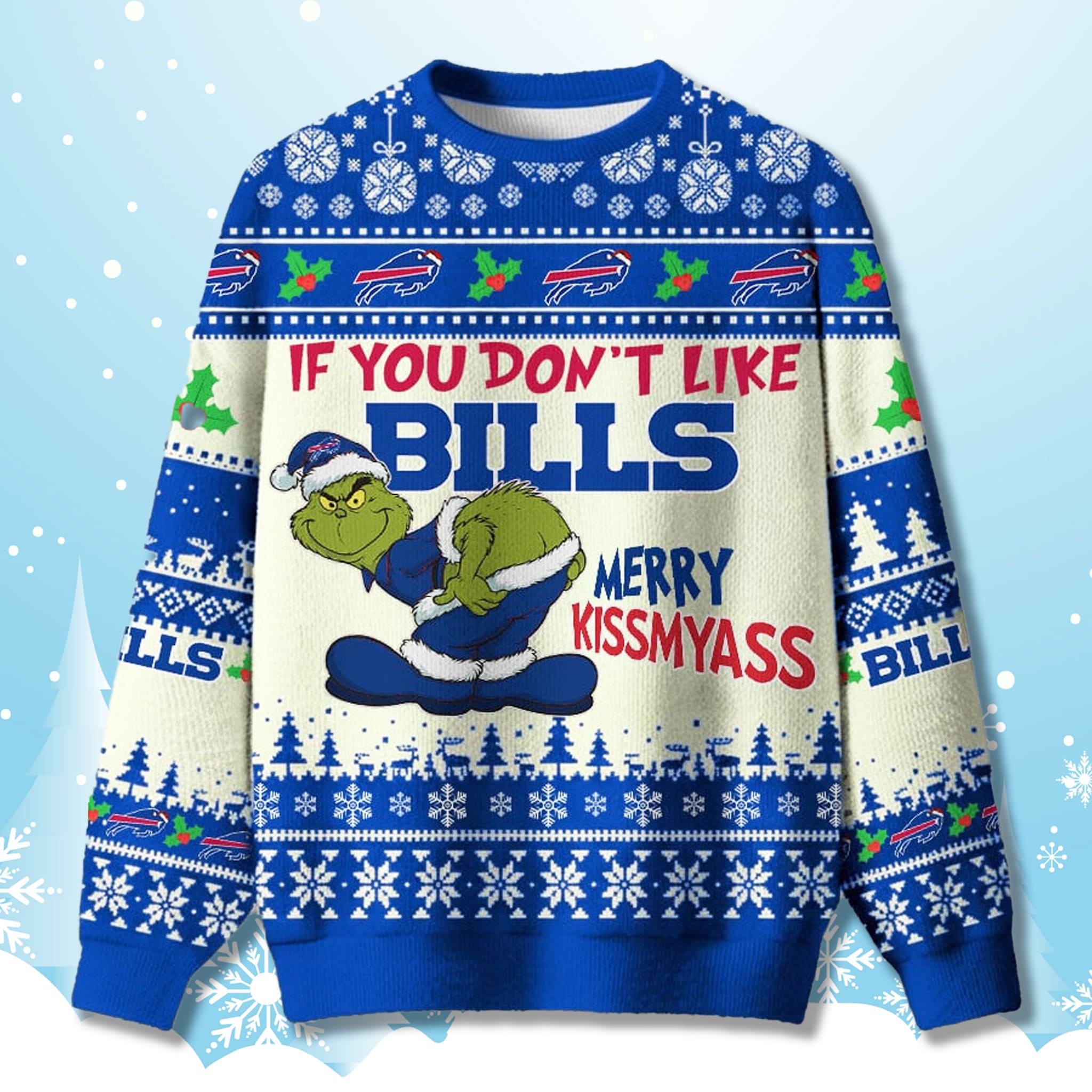 Be the star of the holiday tailgate with this perfect blend of sass and spirit. It’s a must-have for you and the perfect gift for your favorite Bills fan. Order your If You Don’t Like Bills Ugly Christmas Sweater today and show everyone what Bills Mafia pride looks like!