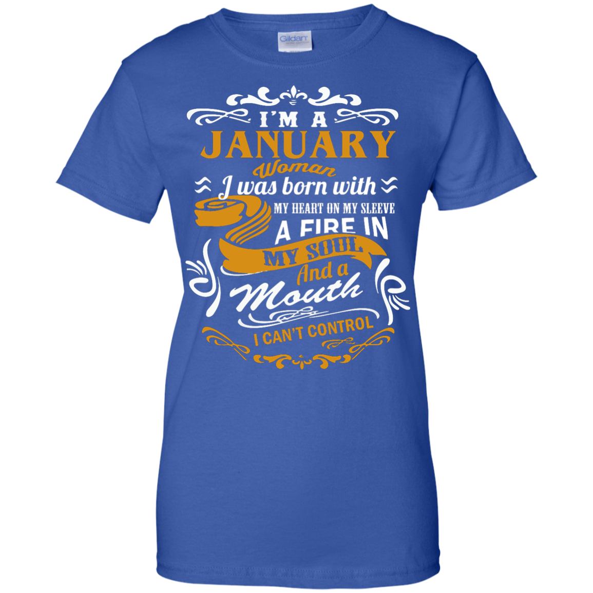 I’m A January Woman I Was Born With My Heart On My Sleeve Shirt, Hoodie, Tank available.