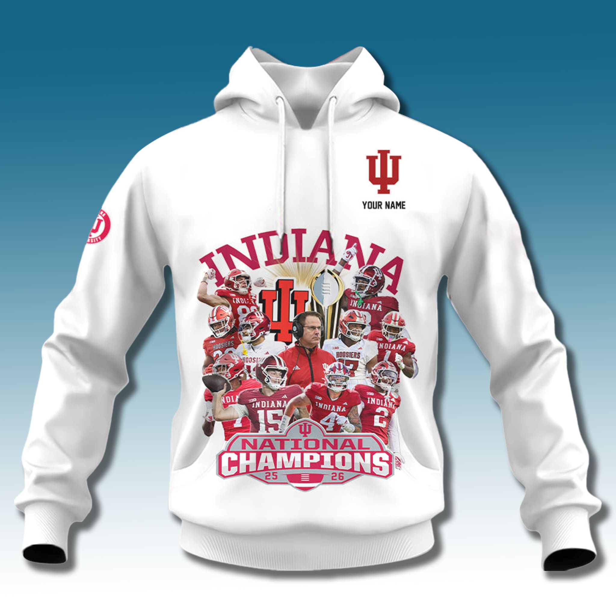 Indiana Football 2026 National Champions Hoodie is a commemorative item celebrating the first national college football championship in the history of Indiana University football. Under the leadership of head coach Curt Cignetti, the team completed the 2025–2026 season with an undefeated 16–0 record, defeating the Miami Hurricanes in the College Football Playoff National Championship game at Hard Rock Stadium. This product honors the journey from a program once known as the most losing team in Division I history to the national crown – a truly magical run.