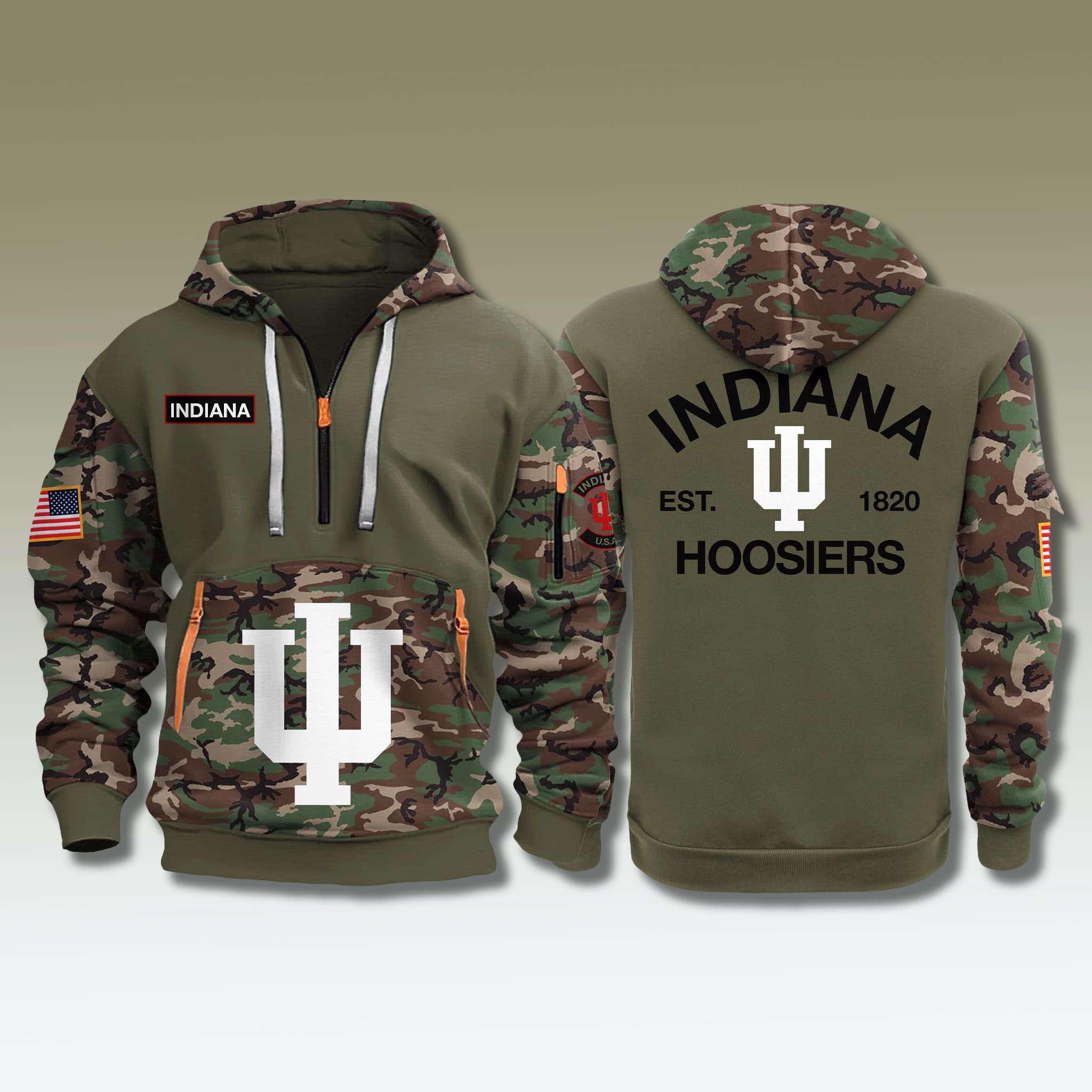 The Indiana Hoosiers Military Camo Zip Hoodie 2025 is a standout design that goes beyond team apparel – it represents courage, unity, and unshakable pride. Inspired by the discipline and resilience of the U.S. military and the fiery enthusiasm of Hoosier fans, this hoodie celebrates the legacy of the Indiana Hoosiers, a program rooted in tradition since Est. 1820. This is more than fan gear.