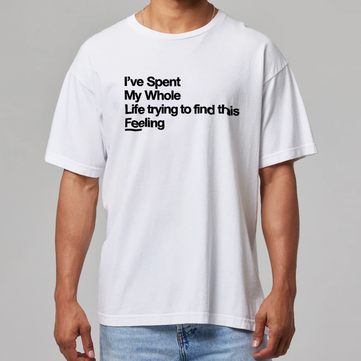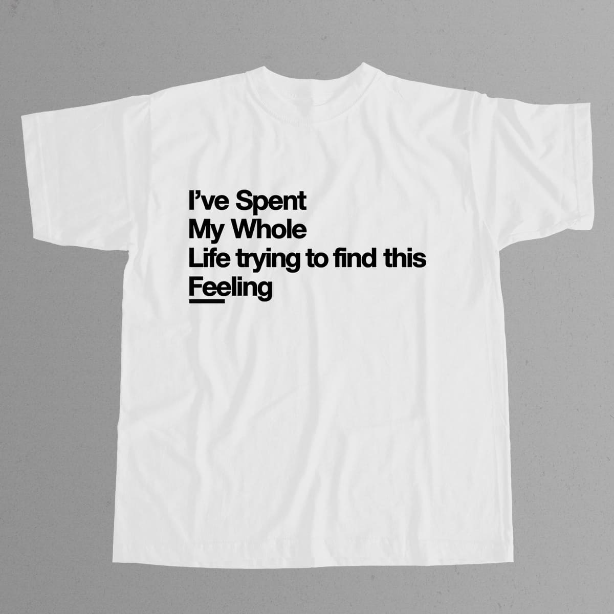 The I’ve Spent My Whole Life Trying To Find This Feeling T-Shirt features a minimalist design with a powerful message about the lifelong journey of searching for a special feeling – that moment when everything feels complete, meaningful, and right. This piece is made for those who have wandered through many emotional highs and lows, overcome challenges, and ultimately reached a sense of peace, happiness, or deep fulfillment.