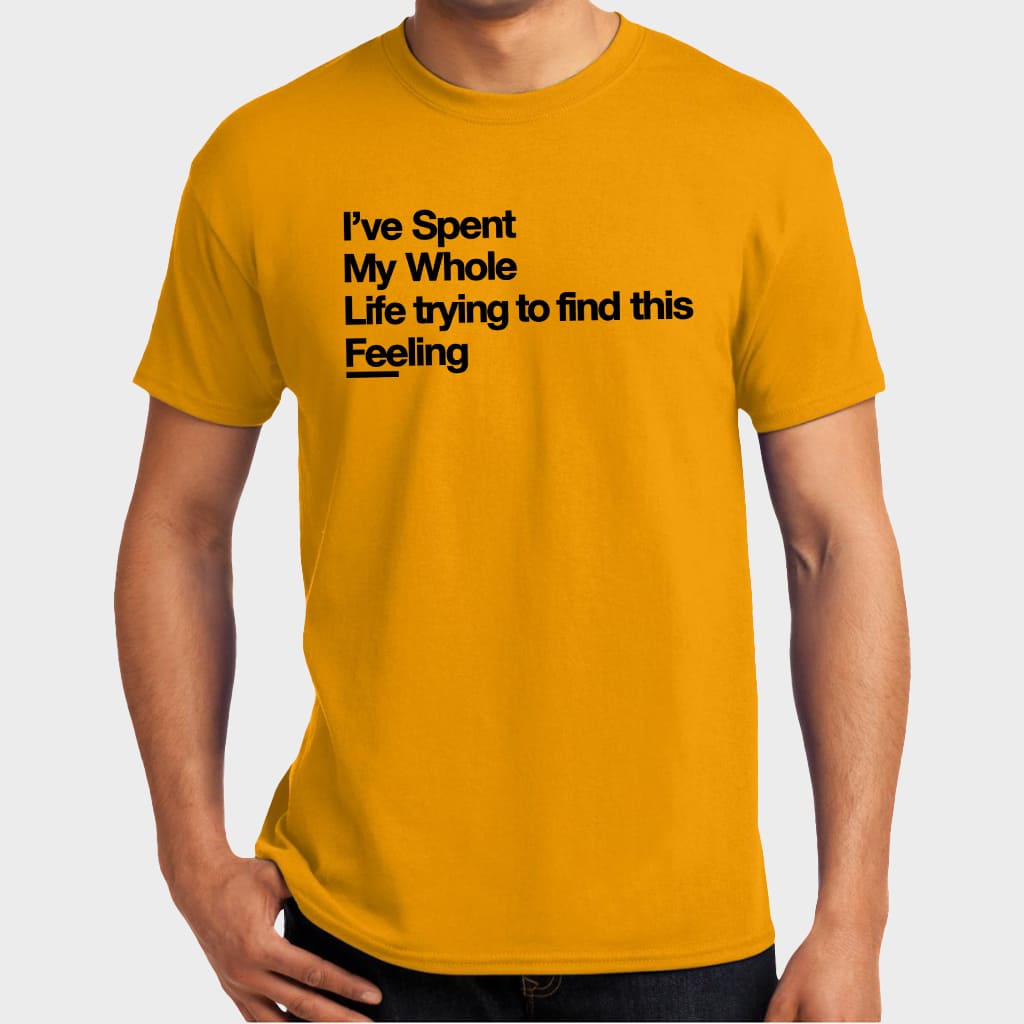 Get the I’ve Spent My Whole Life Trying To Find This Feeling Shirt now to remind yourself and others of the journey to find true emotions in life. This is not just a fashion item but also carries deep emotional value – perfect for those who have found, are finding, or will find that “feeling” and want to share a meaningful message in a subtle way.