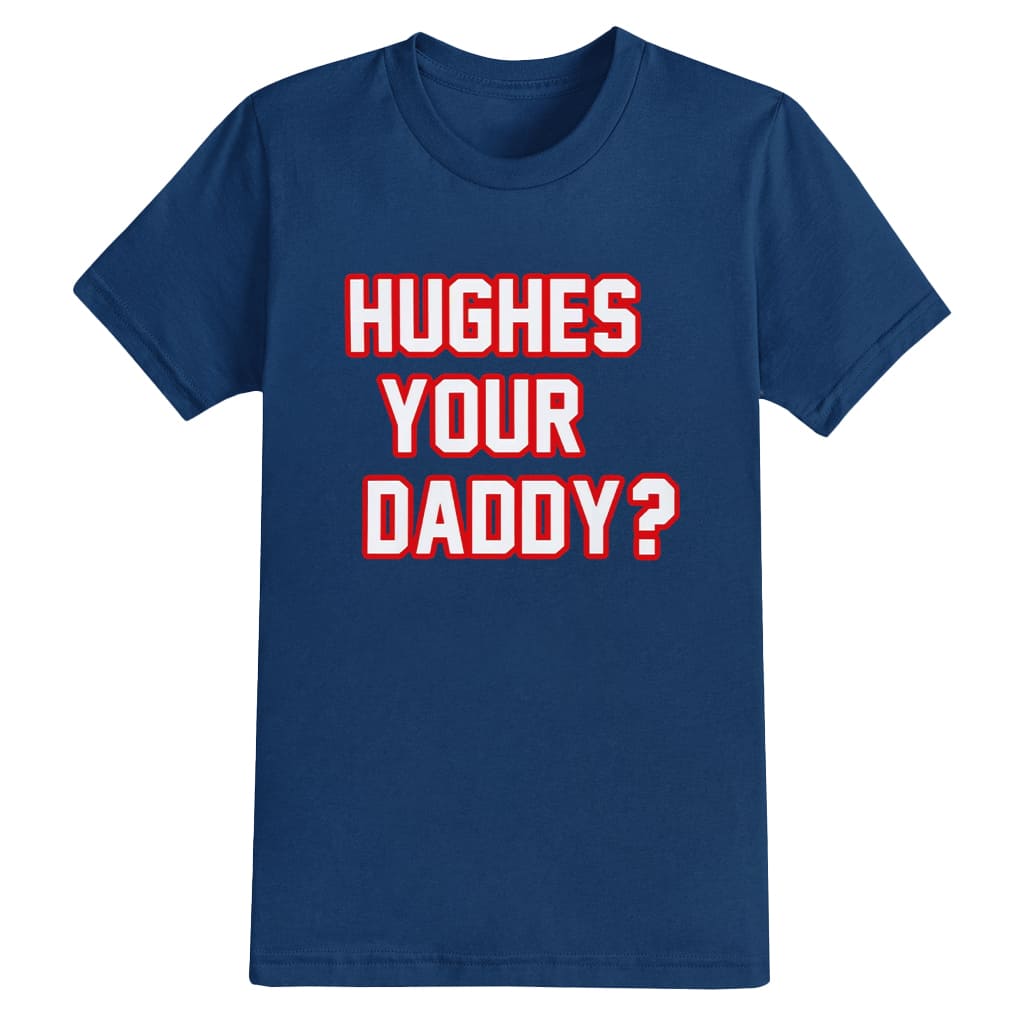 Owning this design is the perfect way to express your personal style and love for the fast-paced sport of hockey. With meticulous finishing and a champion-inspired message, the Hughes Your Daddy T-Shirt is sure to become a must-have piece in every true fan’s wardrobe. Don’t miss your chance to grab yours today and celebrate the next big victories alongside Jack!