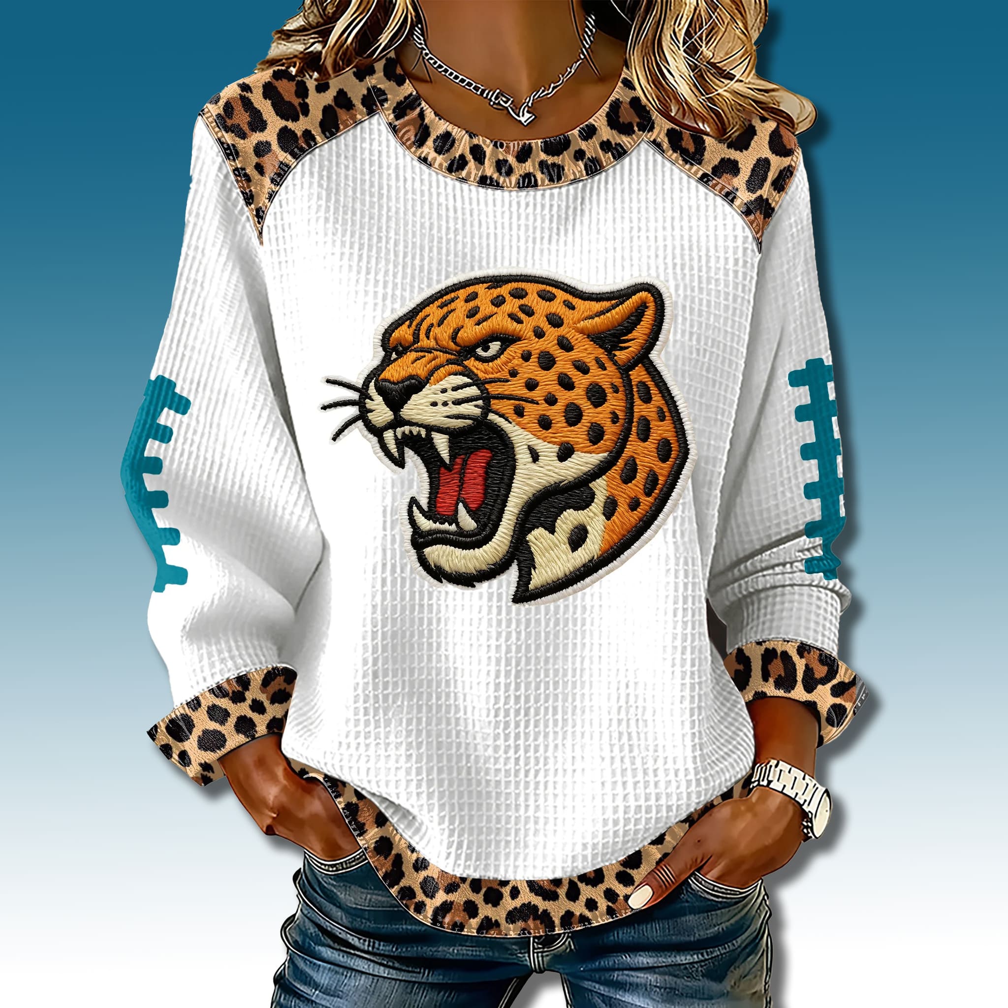 Jaguars Leopard Pattern Waffle Sweater – Empowering Confidence and Passion for Women