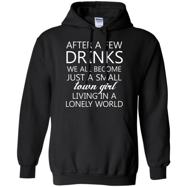 After a few drinks, we all become just a small town girl living a lonely world. Tees, tanks, hoodies available.