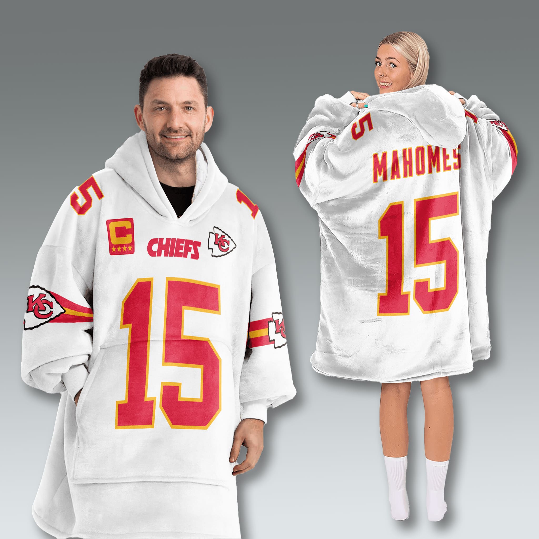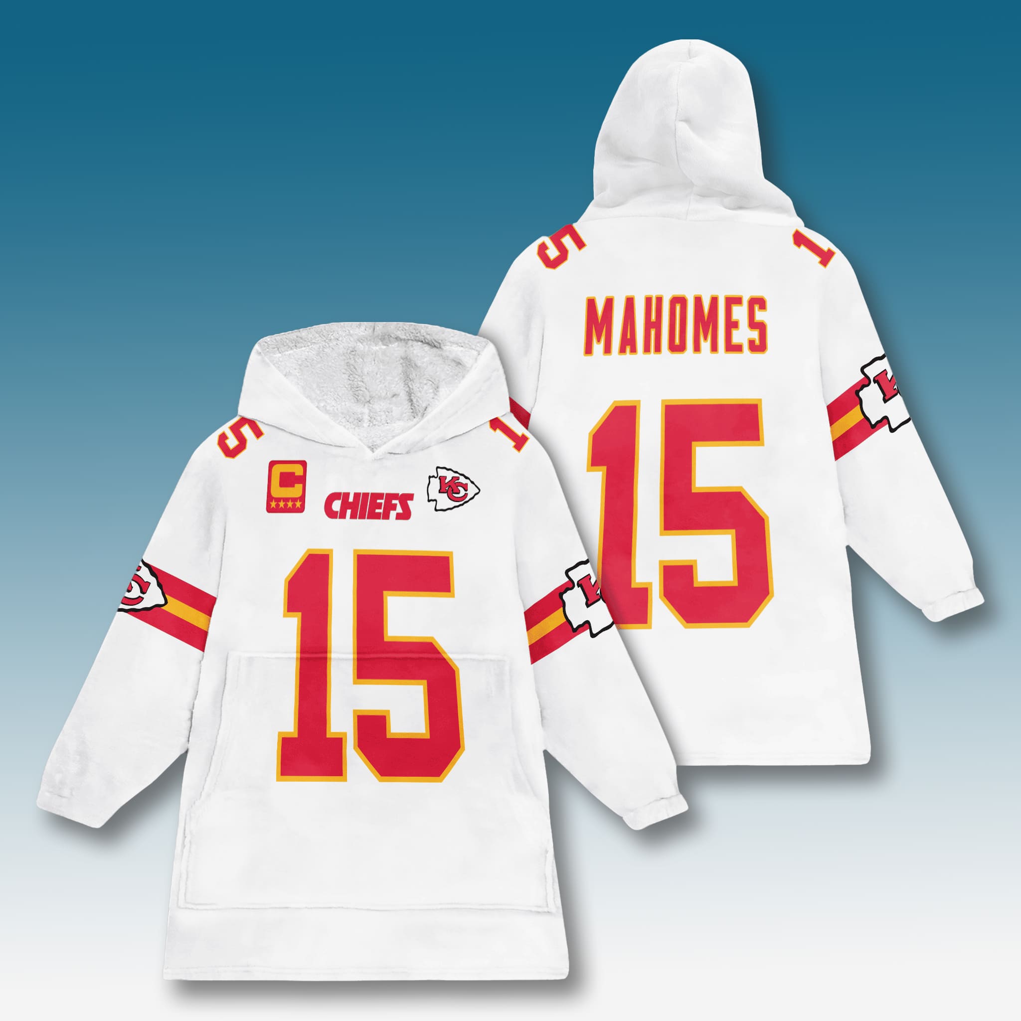 This Chiefs blanket hoodie features a clean White design with sharp Red and Yellow trims, inspired by the team captain’s uniform. The oversized blanket hoodie style offers warmth and comfort, while the symbolic Captain Patch and number 15 create a meaningful and functional sportswear piece for fans.