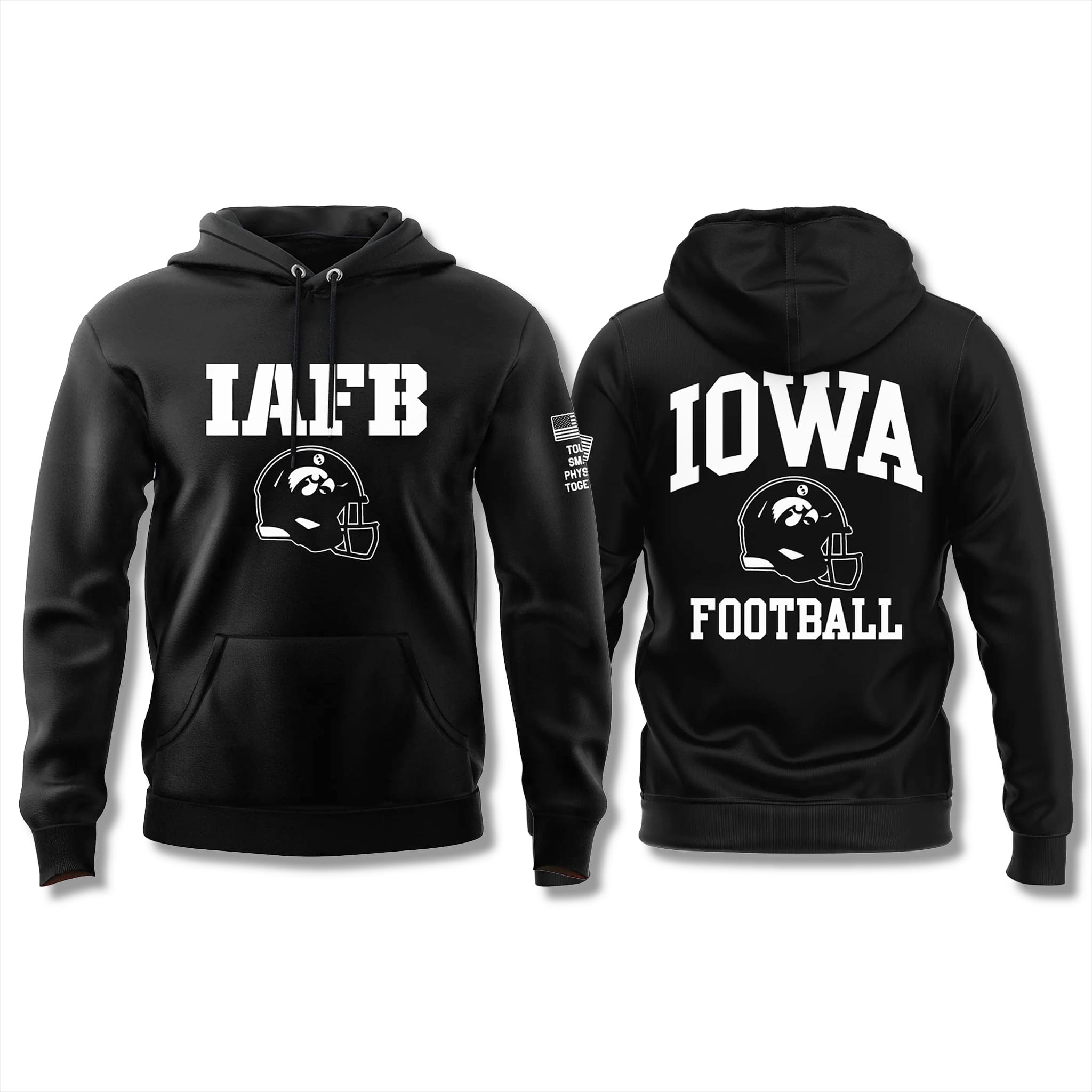 This hoodie features a classic design on a bold black base, easy to style. The front is printed with a large “IAFB” and a Tigerhawk helmet, accompanied by a “Together” patch and a small American flag, creating a meaningful varsity style full of pride. Available at iFrogtrees in multiple styles and sizes for you to choose from and express your passion.