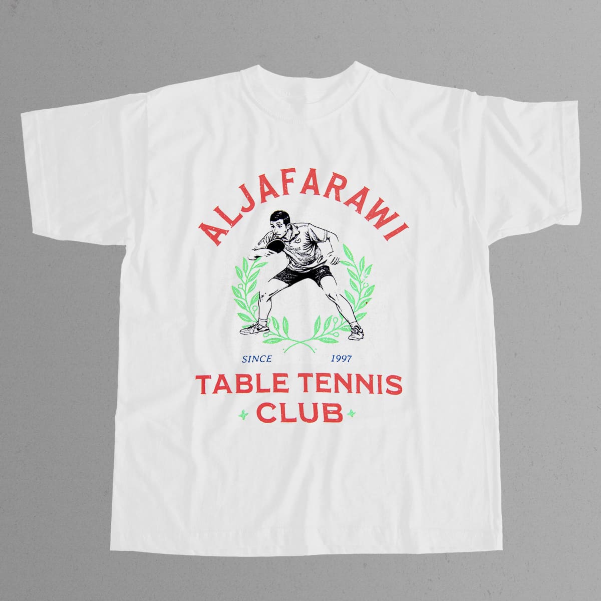 Get your Kyrie Irving Aljafarawi Table Tennis Club Shirt now to join Kyrie Irving in honoring the table tennis legacy of Saleh Aljafarawi, born in 1997, with a meaningful vintage design and strong humanitarian value. This is a special item that blends sports, fashion, and charity. Order today to help spread a positive message.