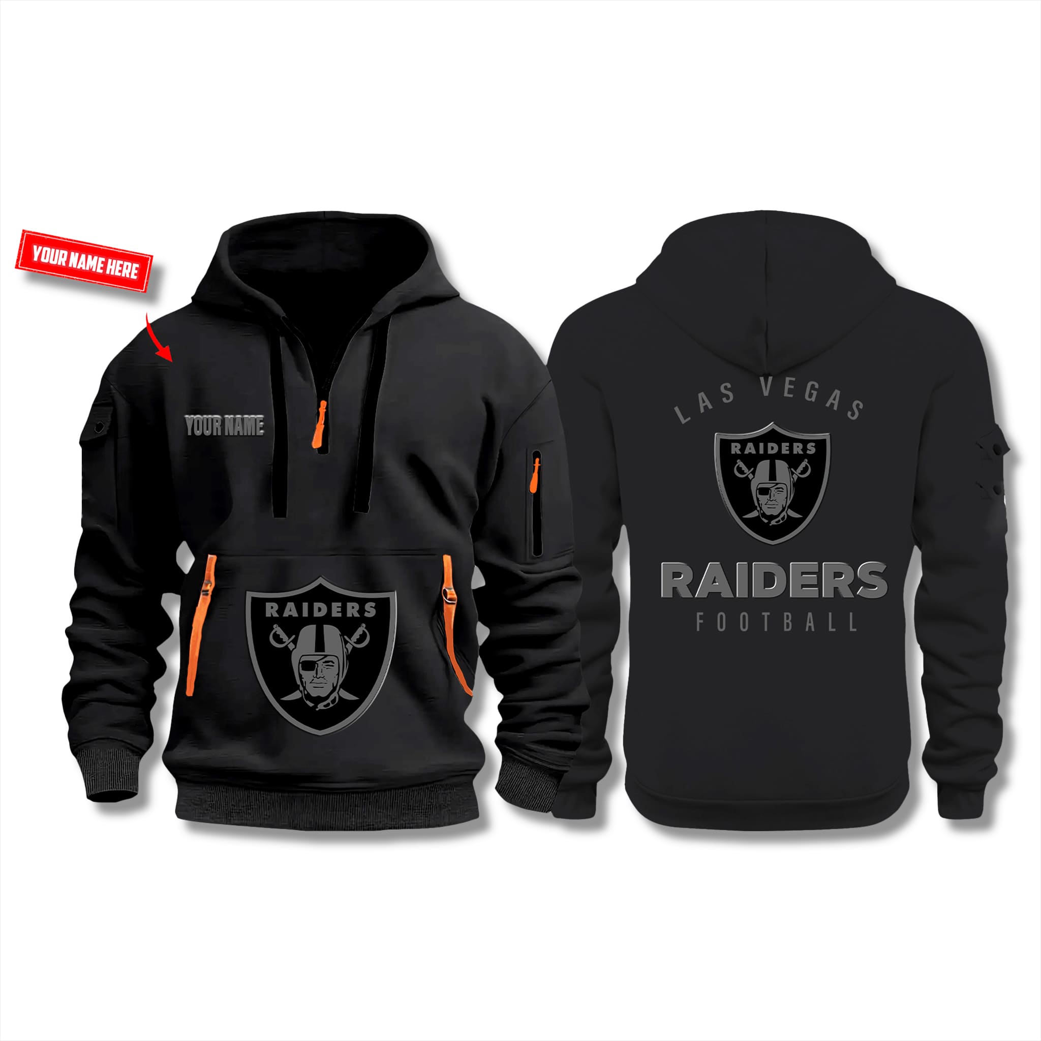 Raiders Back In Black Quarter Zip Hoodie 2025 – Bold Streetwear for Die-Hard Fans