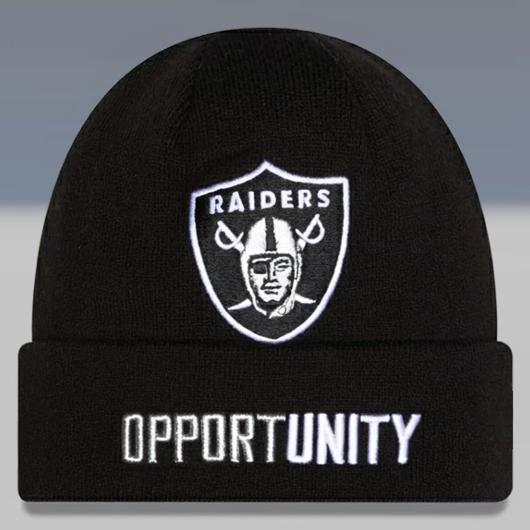 The Raiders Opportunity Beanie Hat 2025 is the perfect fusion of the iconic rebellious spirit of the “Silver and Black” and a meaningful message of equality. More than just a winter essential, this beanie is a statement of personal strength and the drive to seize new opportunities. Featuring the legendary shield logo with crossed swords, the design delivers a bold, commanding look – keeping you both warm and confident even in the harshest winter conditions.