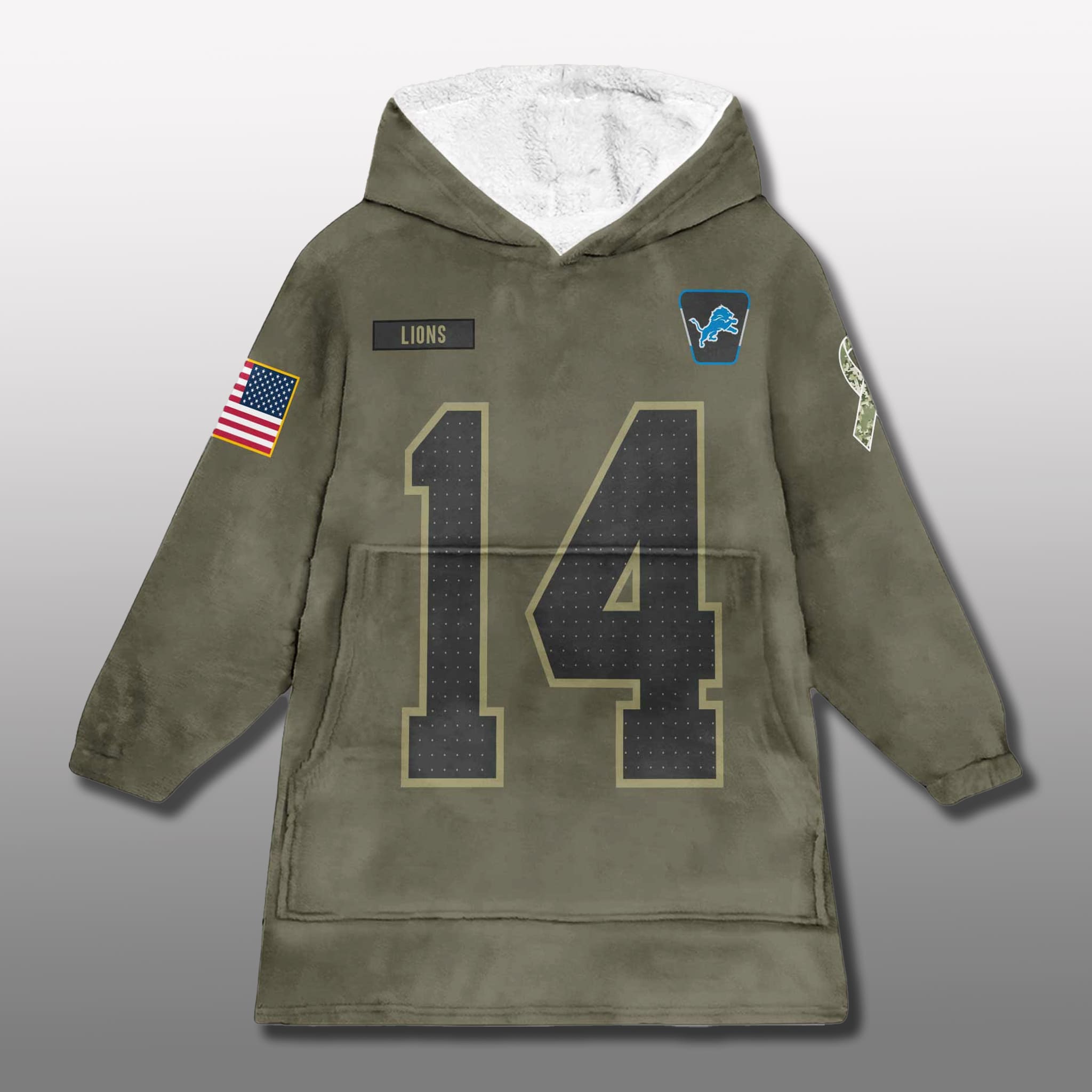 The Lions Salute To Service 2025 Blanket Hoodie is a special design that not only offers warmth and comfort but also carries a meaningful message of appreciation. Inspired by military spirit, this blanket hoodie combines outstanding comfort with pride for the Detroit Football and player number 14. Wearing it allows fans to relax fully while expressing meaningful support for both the team and the heroes who serve.