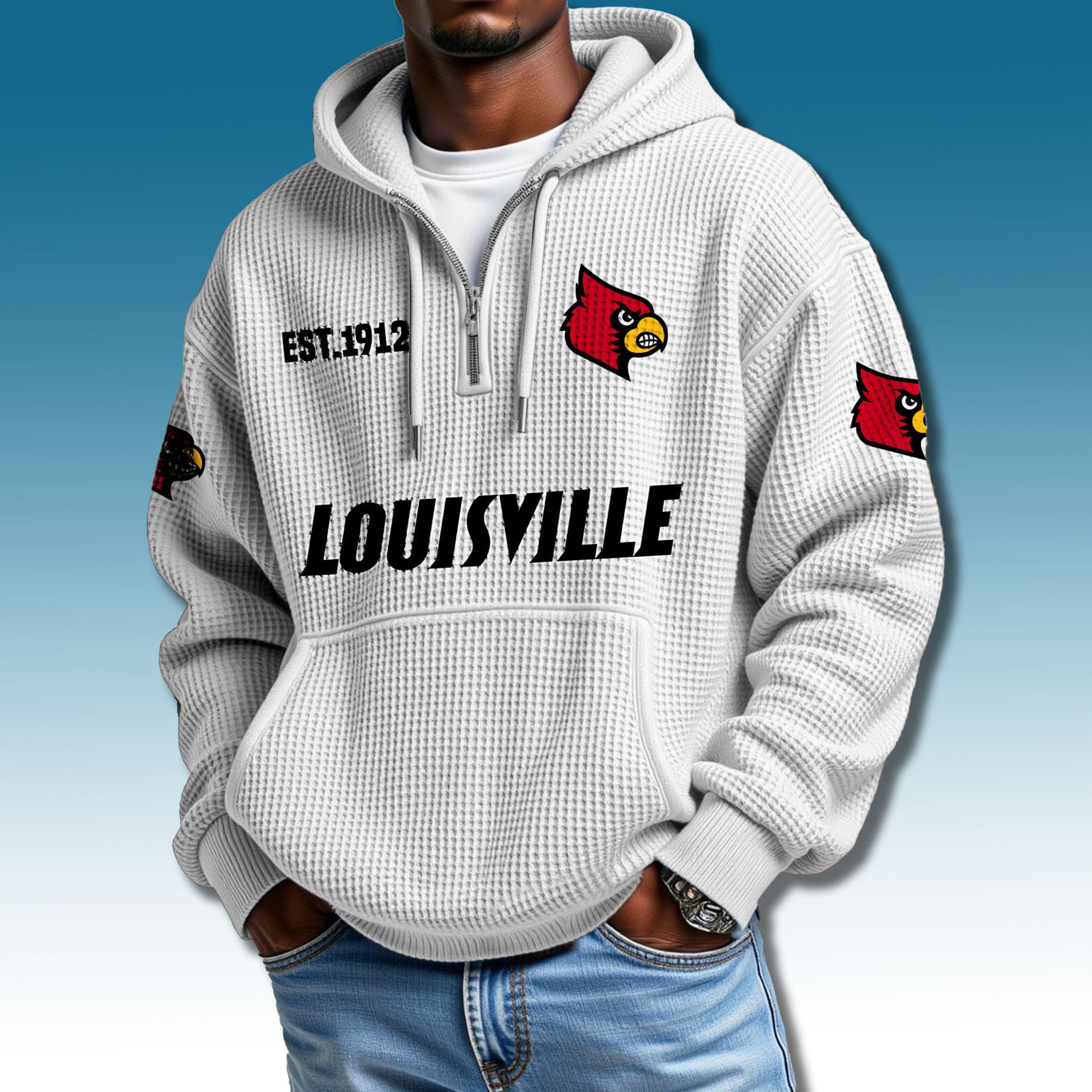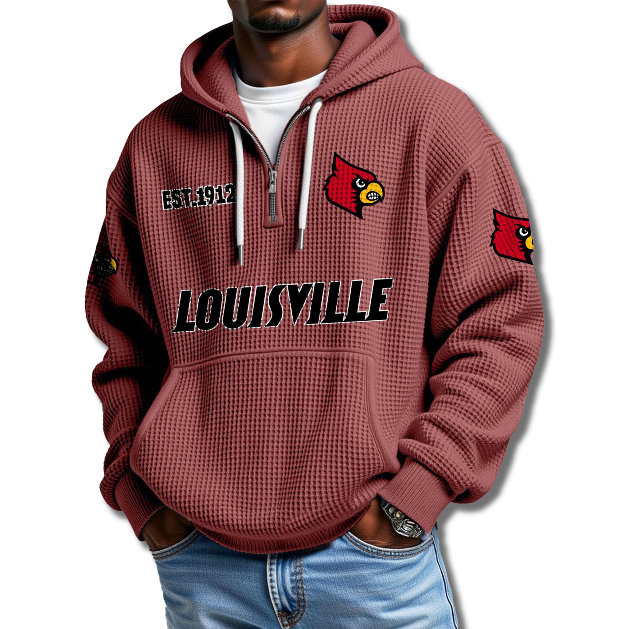 Louisville Cardinals EST 1912 Waffle Quarter Zip Hoodie – Heat Fueled by “The Cards” Fighting Spirit