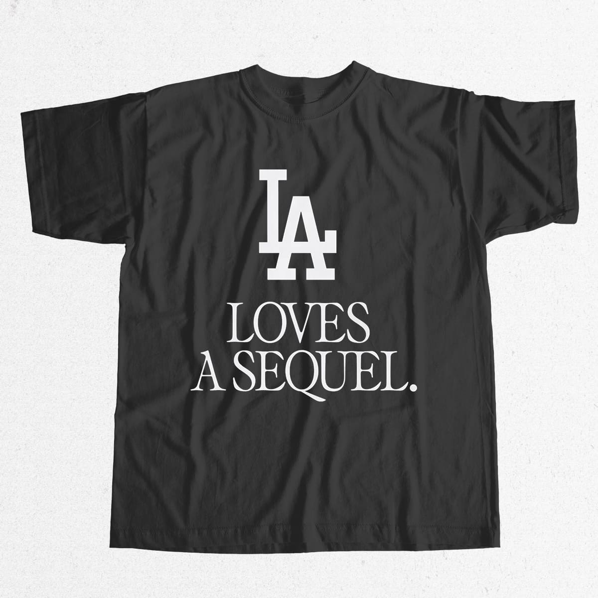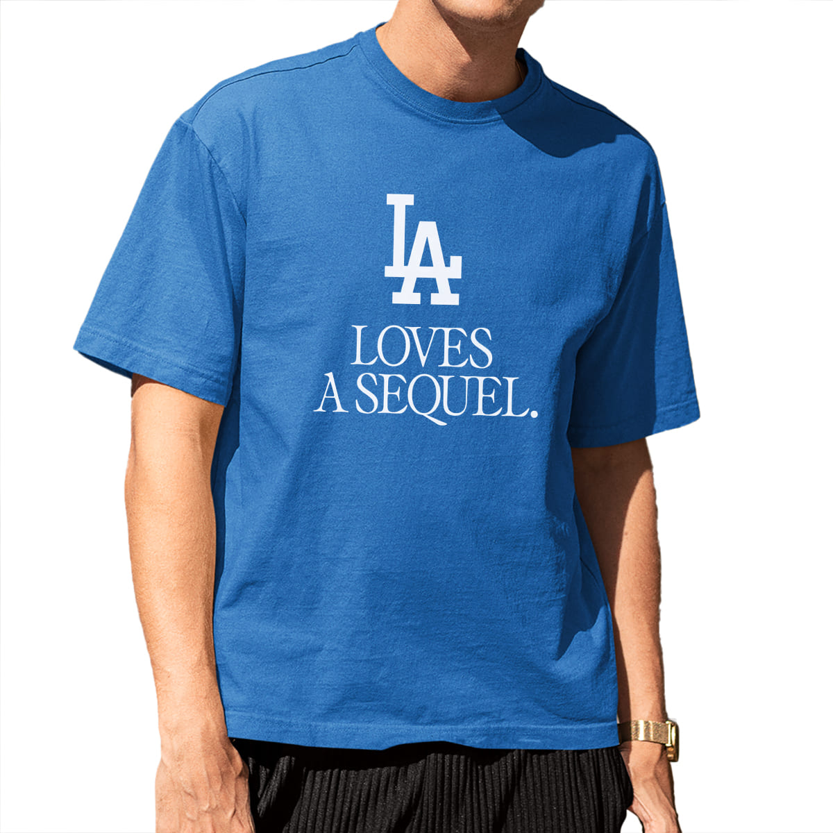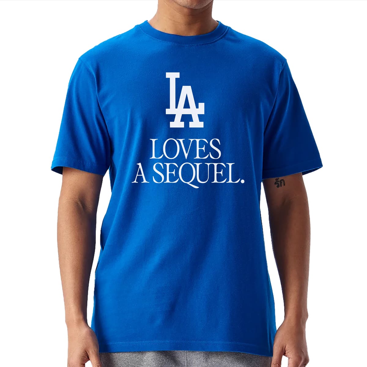Released right after the thrilling Game 7, this shirt quickly became a hot item, loved by fans for its perfect blend of sports spirit and pop culture. Wearing it, you not only show your pride for the Dodgers but also join the viral celebration sweeping across social media, where everyone cheers, “LA Loves A Sequel!” to honor their beloved team.
