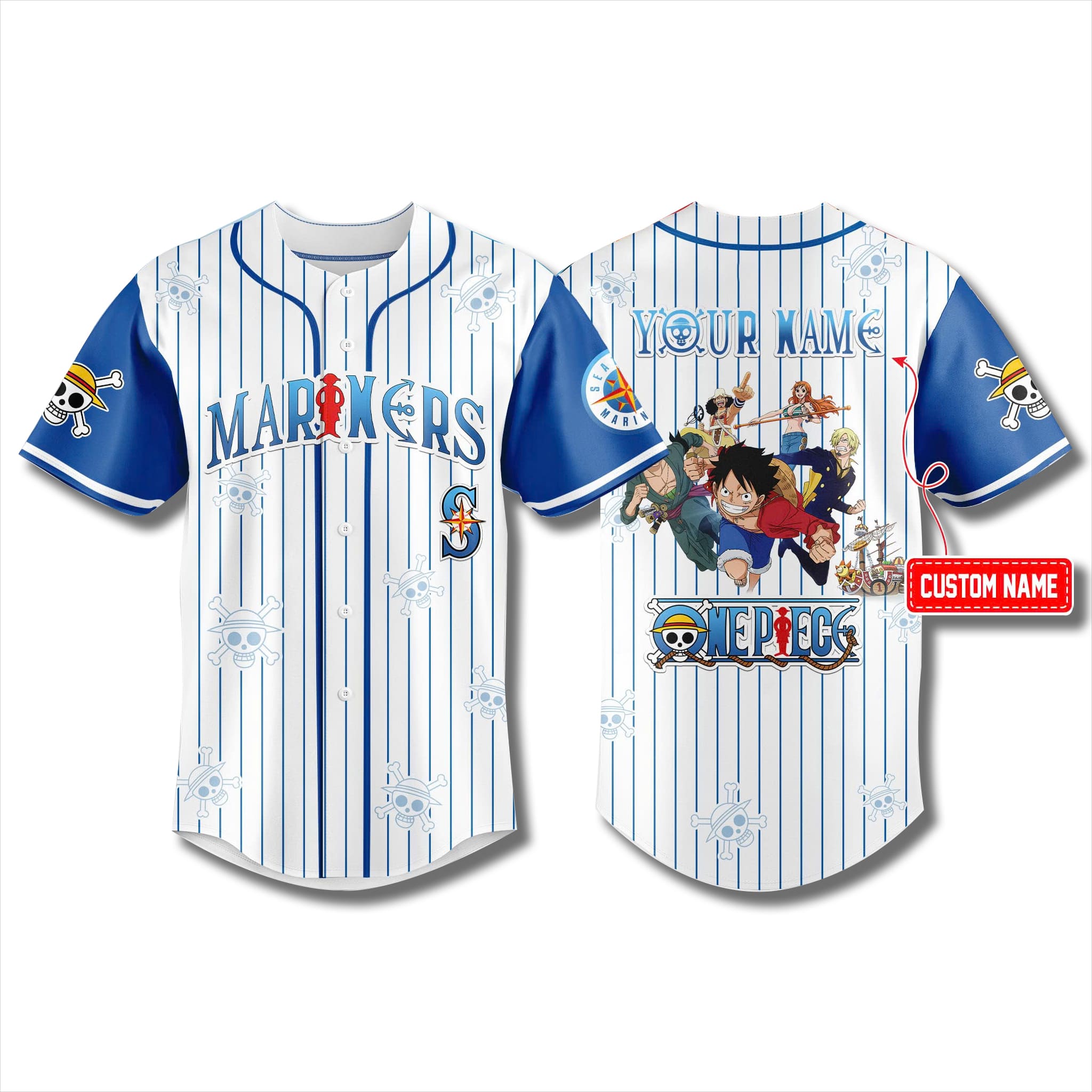 Mariners x One Piece 2026 Stripe Jersey is a special collaboration product between the Seattle Mariners and the legendary manga/anime series One Piece, released in 2026 to celebrate 30 years of Luffy’s journey and the Straw Hat Pirates. This collection is designed specifically for the 2026 season, when the Mariners enter their 50th year since joining the American League (1977–2026), while also aligning with a major milestone for One Piece – a story that continues to conquer the world.