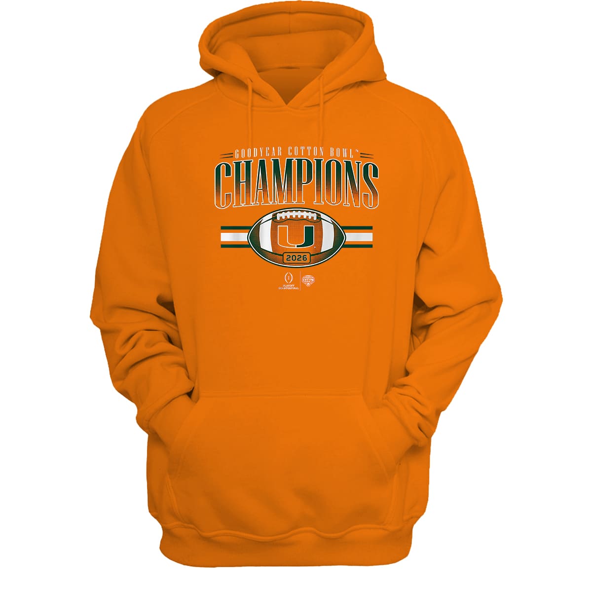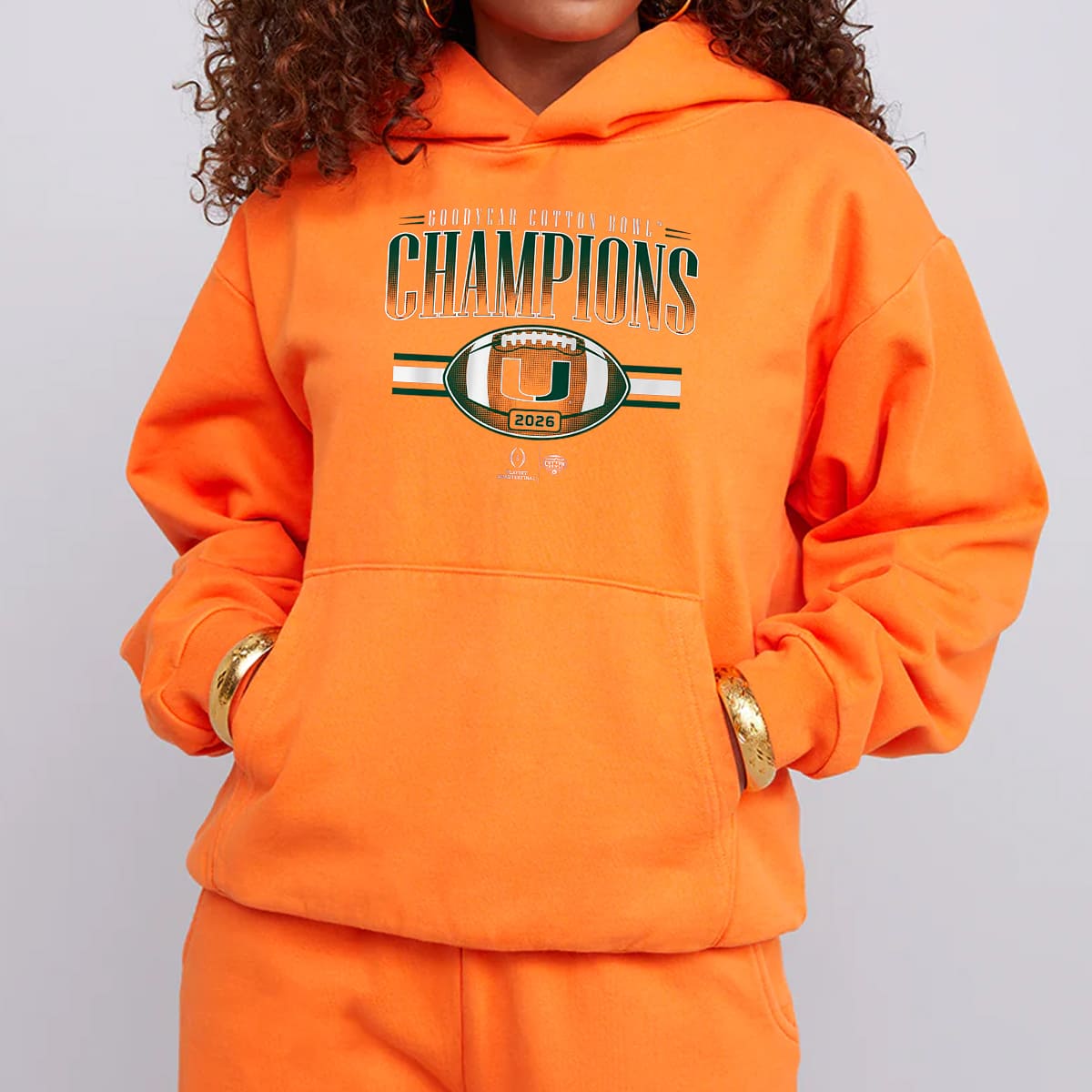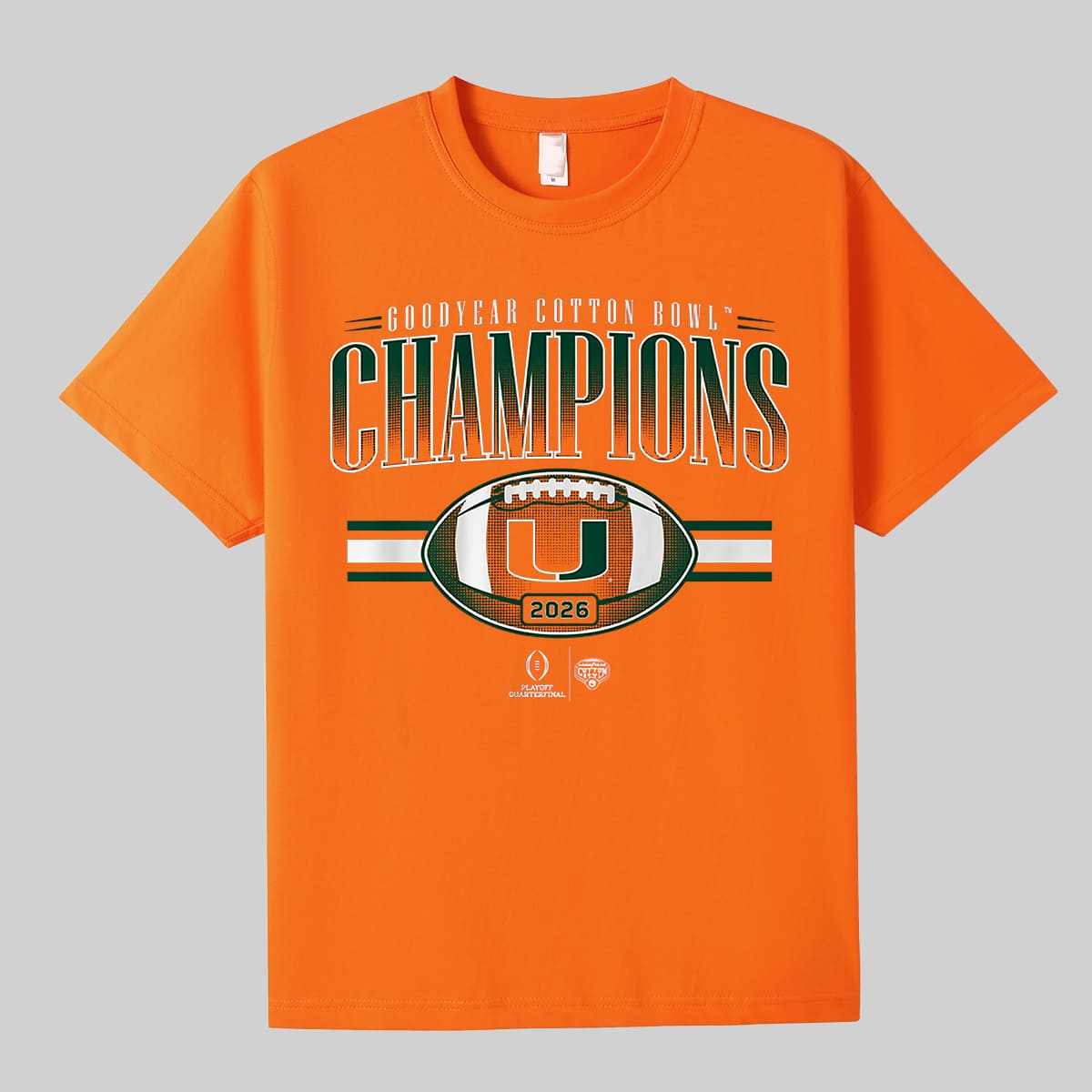 The Miami 2026 Cotton Bowl Champions Shirt is designed exclusively for Miami Hurricanes fans to celebrate the stunning 24–14 victory over the defending national champions, the Ohio State Buckeyes, in the 2025 College Football Playoff quarterfinal. As one of the biggest upsets in CFP history—with Miami entering the game as a 9.5-point underdog – this win propelled the Hurricanes into the semifinals and reaffirmed the power and resurgence of the University of Miami football program. More than just apparel, this shirt preserves a defining moment in Hurricanes history and is perfect for anyone passionate about college football.