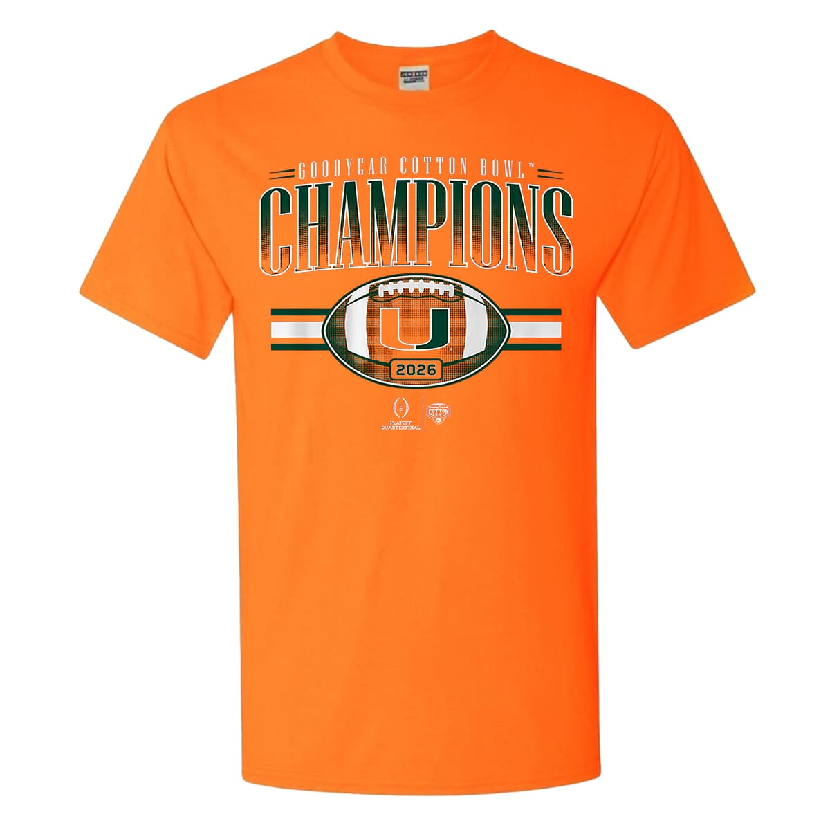 Own the Miami Football 2026 Cotton Bowl Champions Shirt and relive the unforgettable upset victory by the Miami Hurricanes at the Goodyear Cotton Bowl Classic. Order today and wear your Hurricanes spirit with pride.