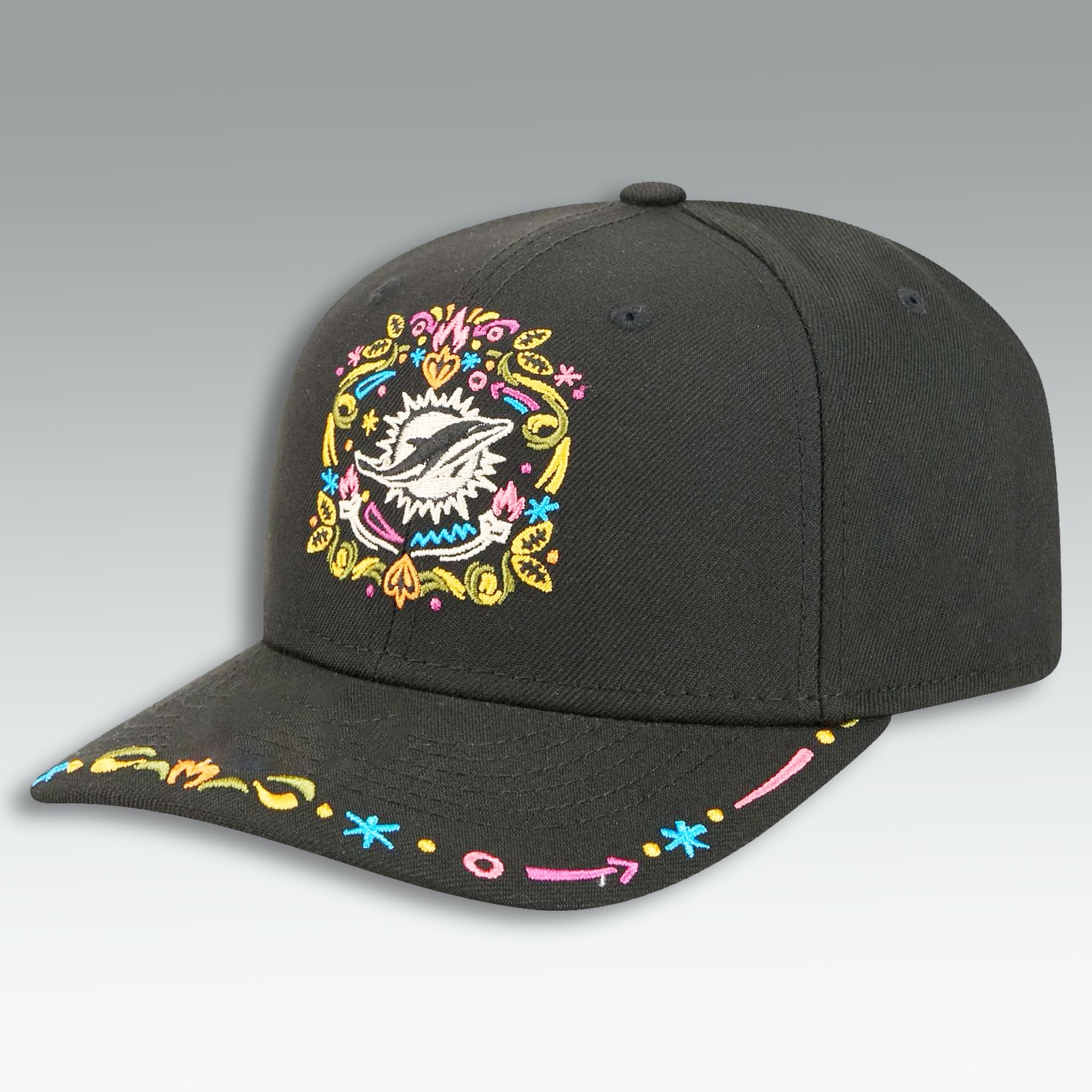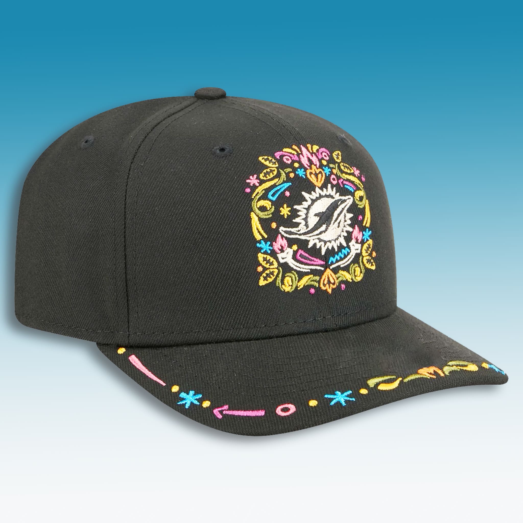 The Dolphins Hasta La Muerte Hat gives the classic Dolphins logo a brilliant, artistic overhaul. These lively colors cascade across the brim, ensuring your allegiance is noticed from every angle. This cap is designed for the energetic fan whose style is as bright and bold as Miami itself, offering a truly distinctive way to celebrate the team’s spirit.