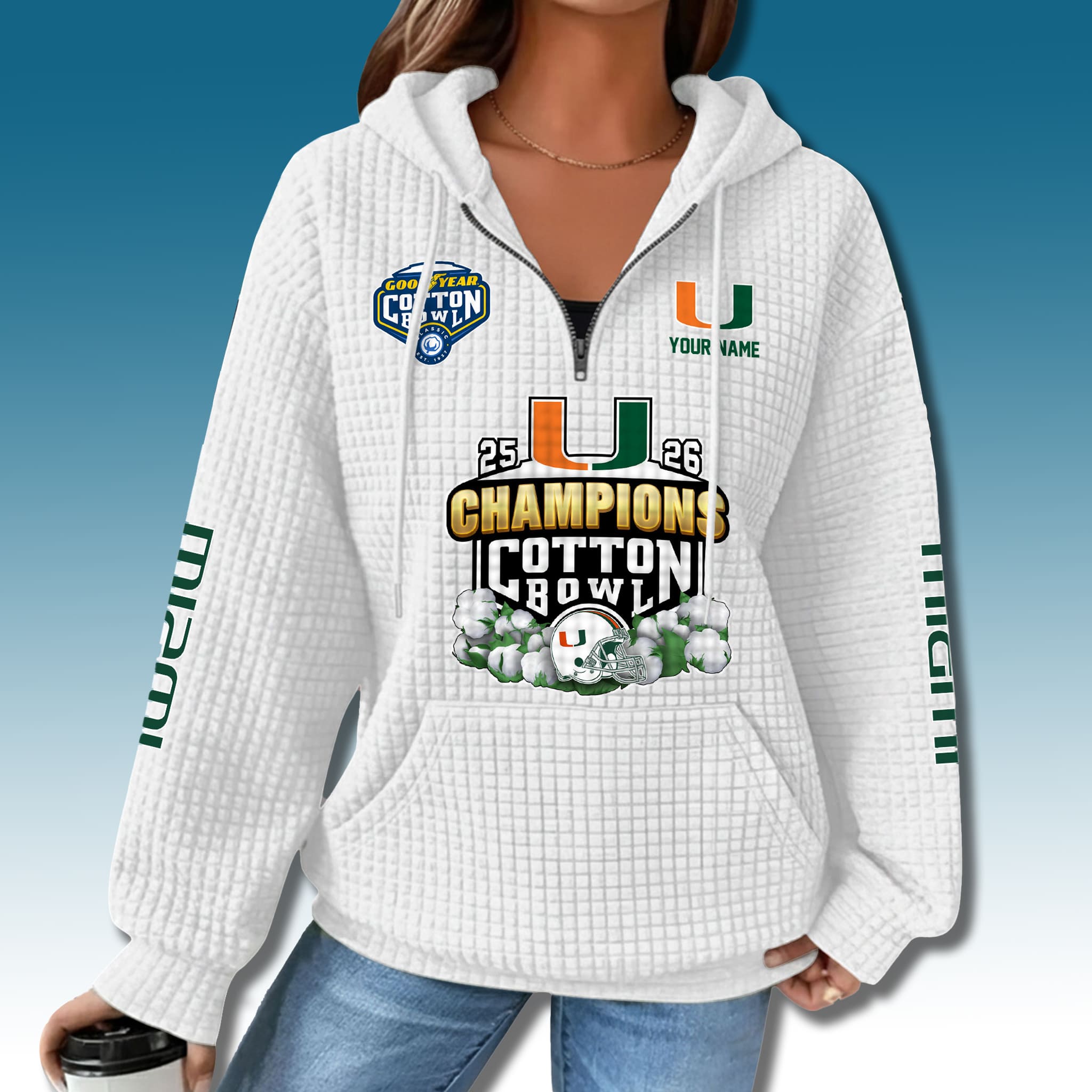 Miami Football 2025 Cotton Bowl Champions Waffle Hoodie – Championship Warmth with Elite Style
