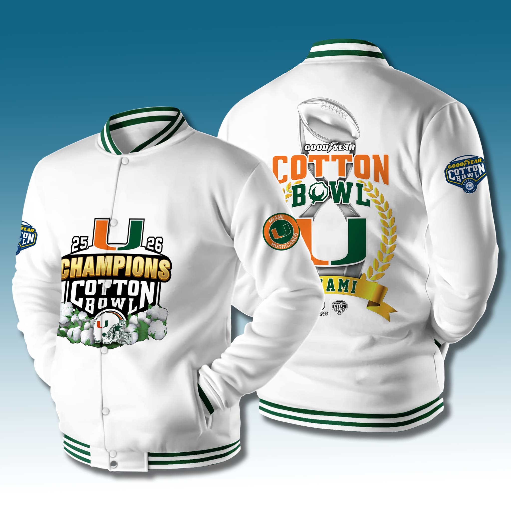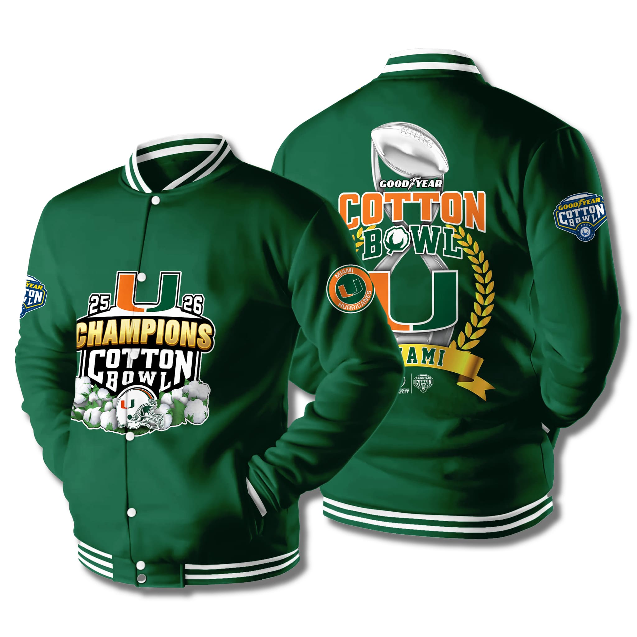 Miami Hurricanes Cotton Bowl Champions Jacket 2025 is the most premium apparel to close out an emotional 2025–2026 season of “The U.” This jacket is not simply a warm outerwear piece, but a championship trophy you can wear, serving as proof of the resounding victory of the Miami Hurricanes at the prestigious Cotton Bowl Classic.