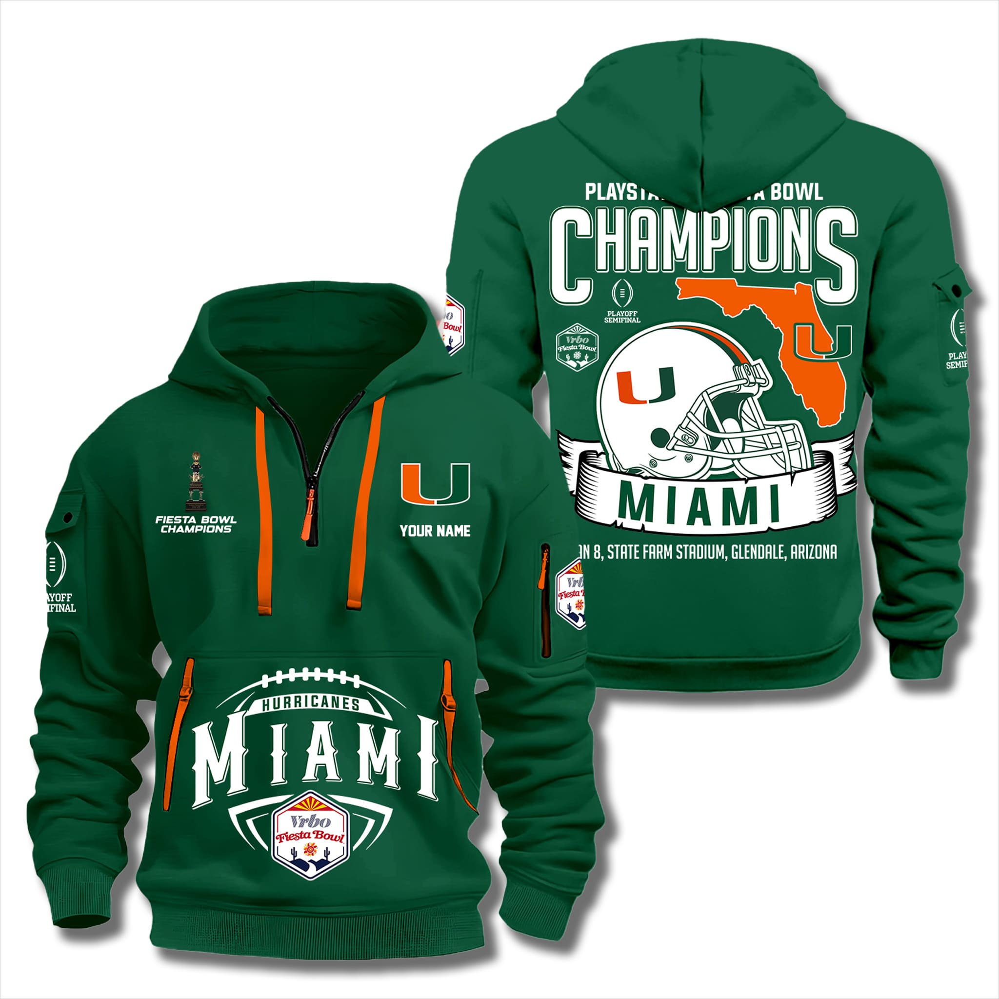 Miami Hurricanes Fiesta Bowl Champions Quarter Zip Hoodie 2026 – Dramatic Victory at the CFP Semifinal