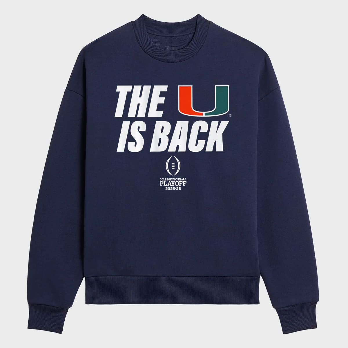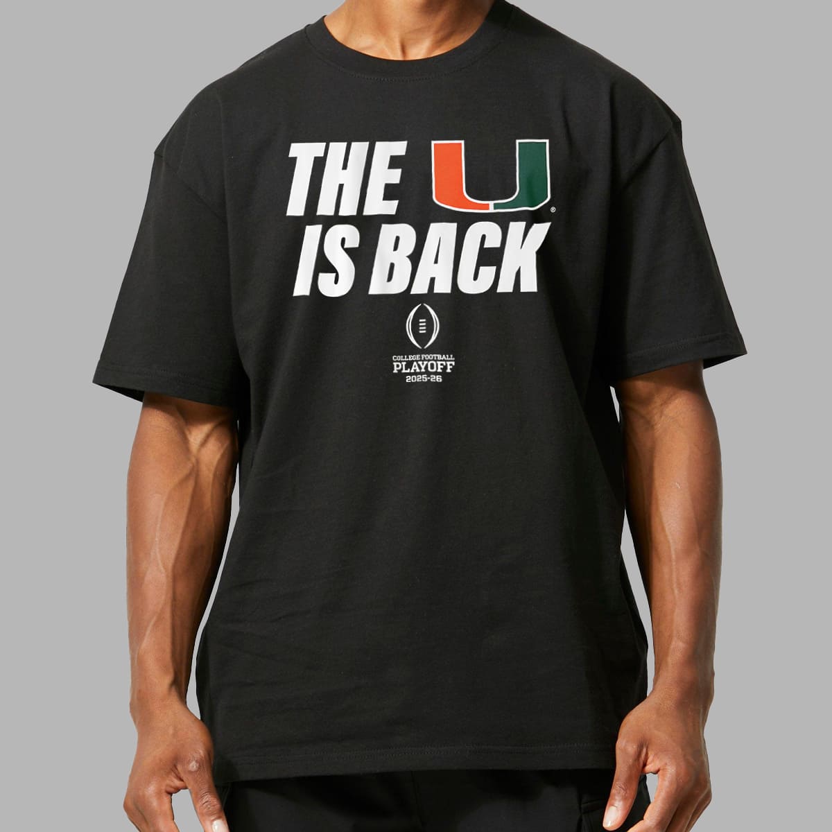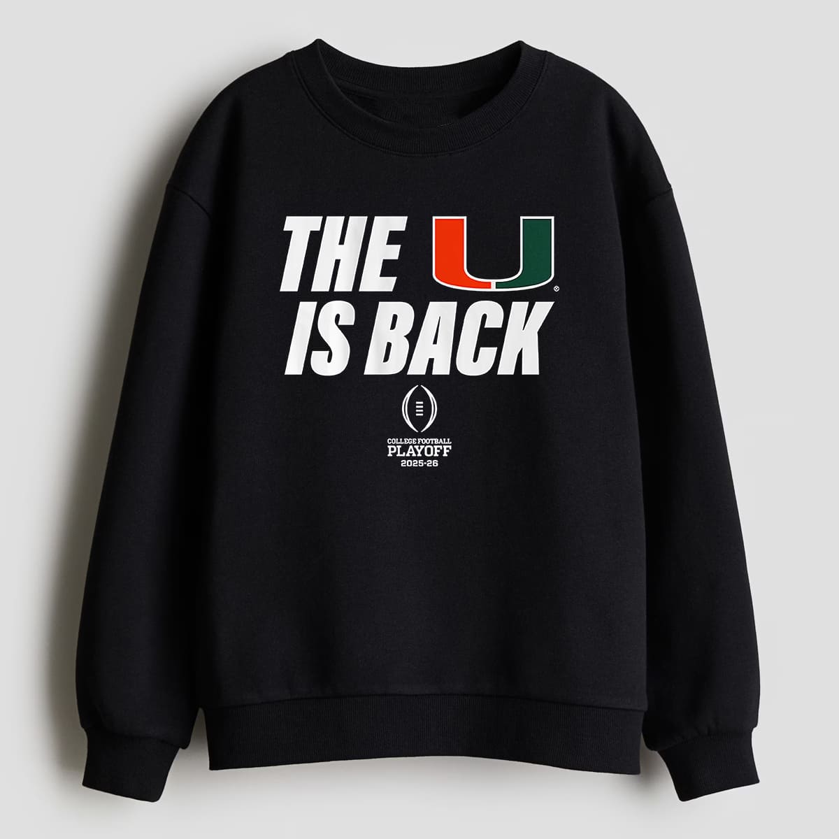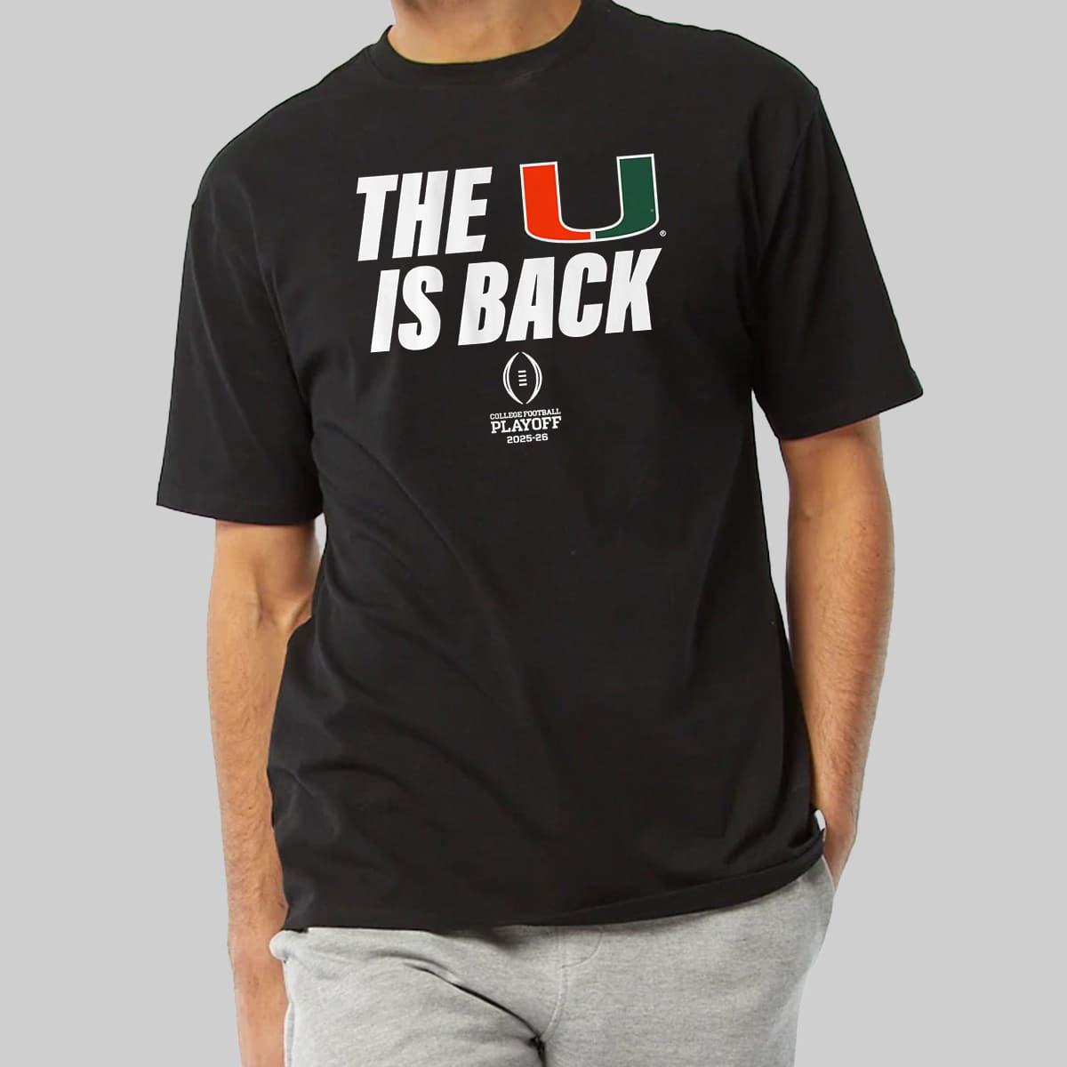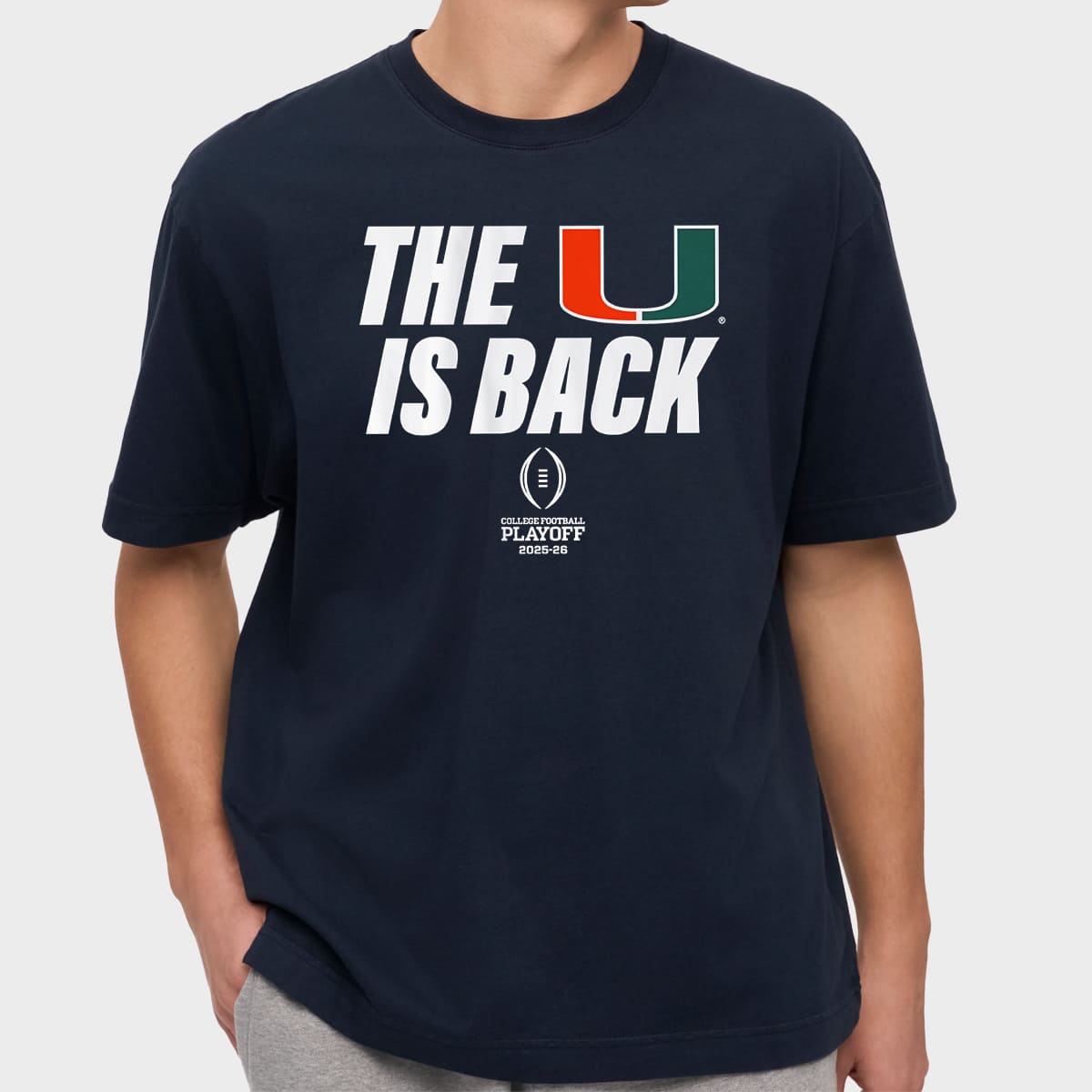 The Miami Hurricanes The U Is Back 2025 CFP Shirt is the strongest declaration any fan of “The Canes” could want to shout to the world: the legendary program has returned to the top. After years of patience and relentless effort, Miami Hurricanes earning a spot in the College Football Playoff (CFP) 2025–26 marks a historic milestone. This shirt is not just fan apparel – it is a symbol of the revival of a sports dynasty.