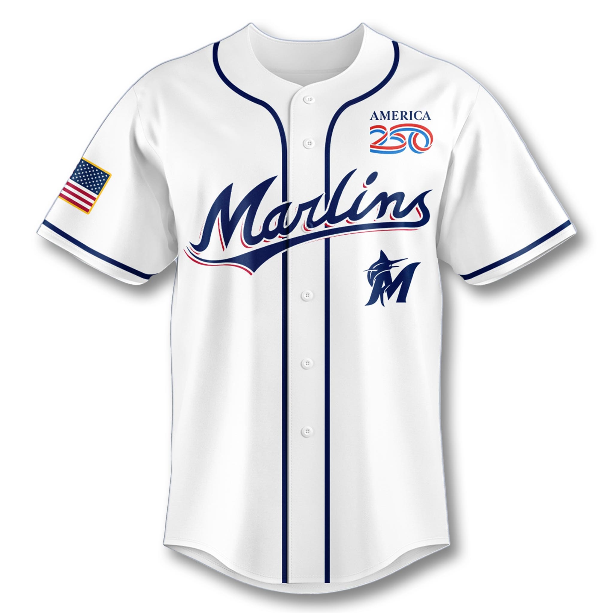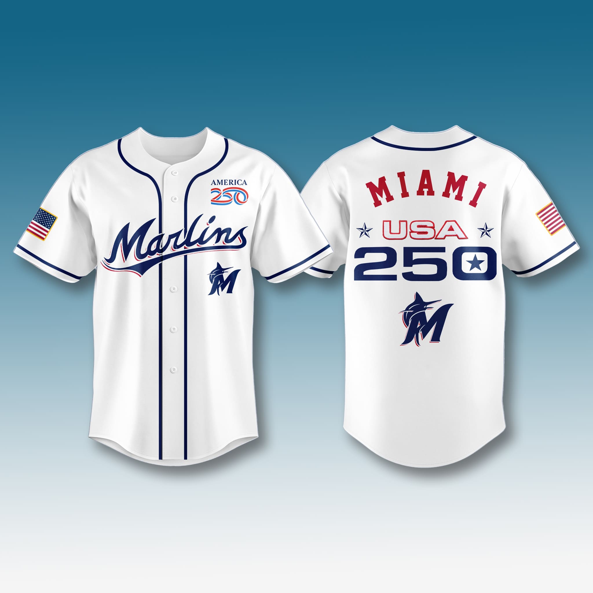 Hurry and own the Miami Marlins America 250 Birthday Jersey 2026 to make your mark during this historic festive season. This is the ultimate gift to showcase your identity as a true Marlins fan and your pride in the 250-year journey of the United States!