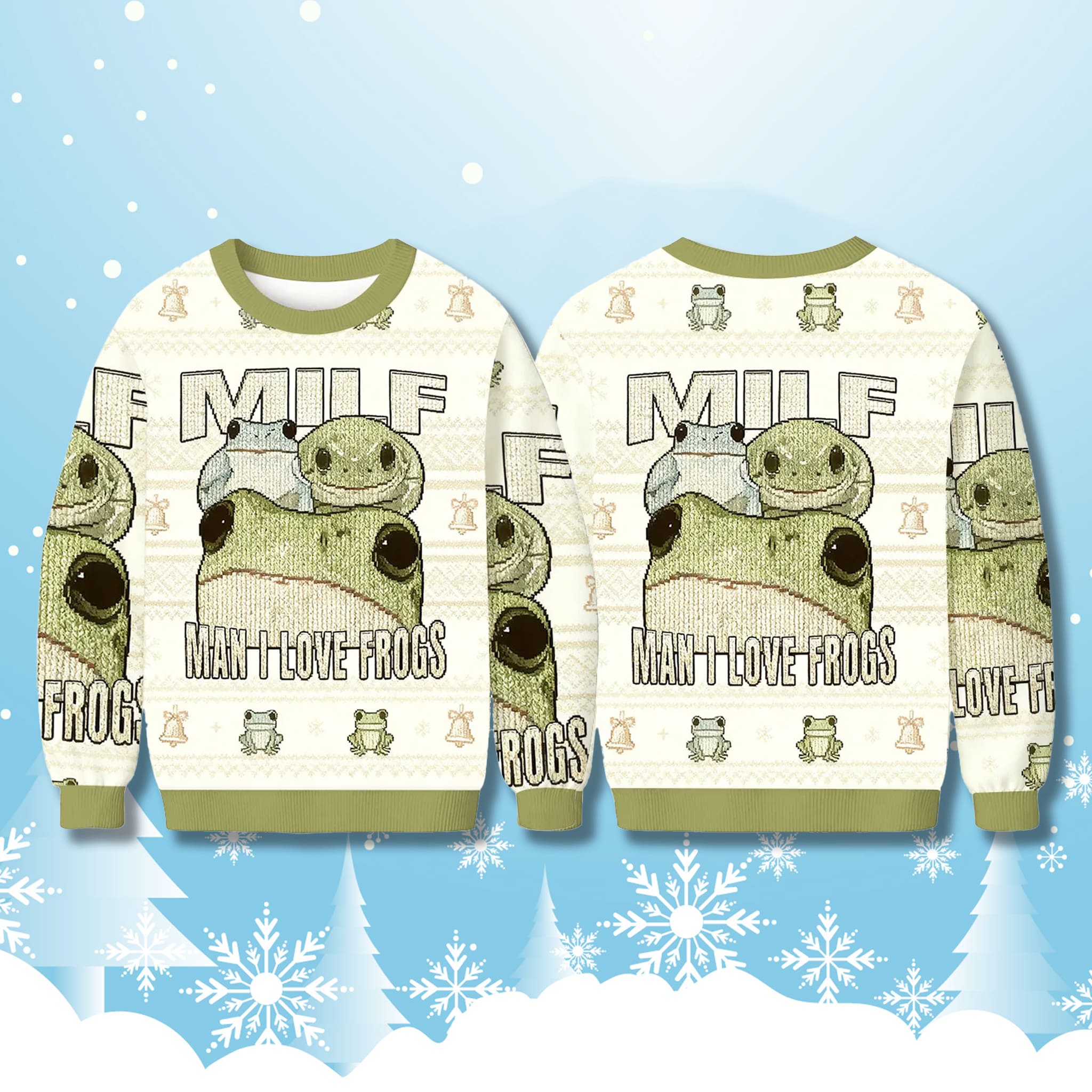 MILF Man I Love Frogs Christmas Ugly Sweater – Amphibian Devotion Unleashed