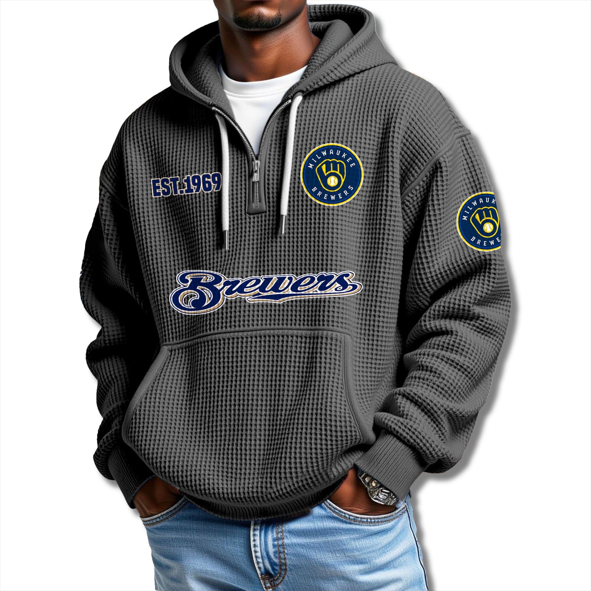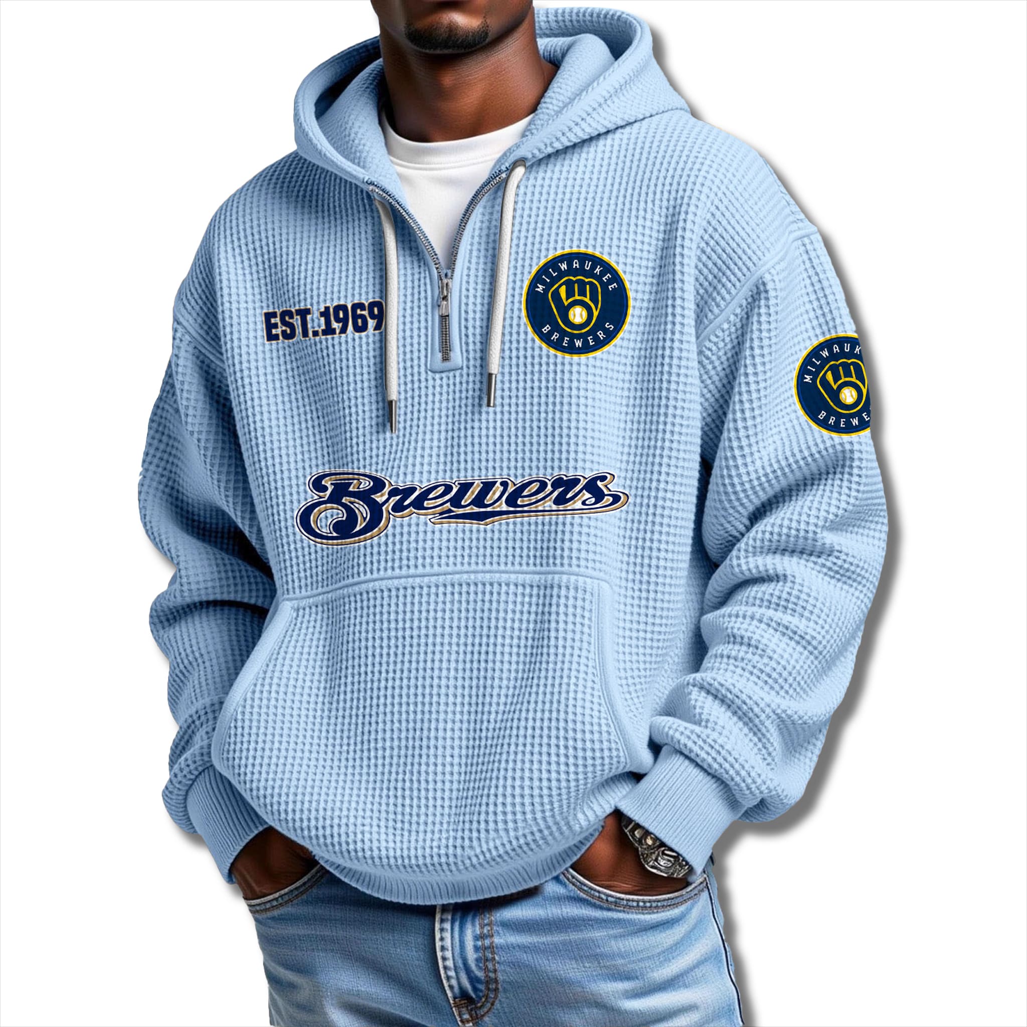 Milwaukee Brewers EST 1969 Waffle Quarter Zip Hoodie – Celebrating American Heritage