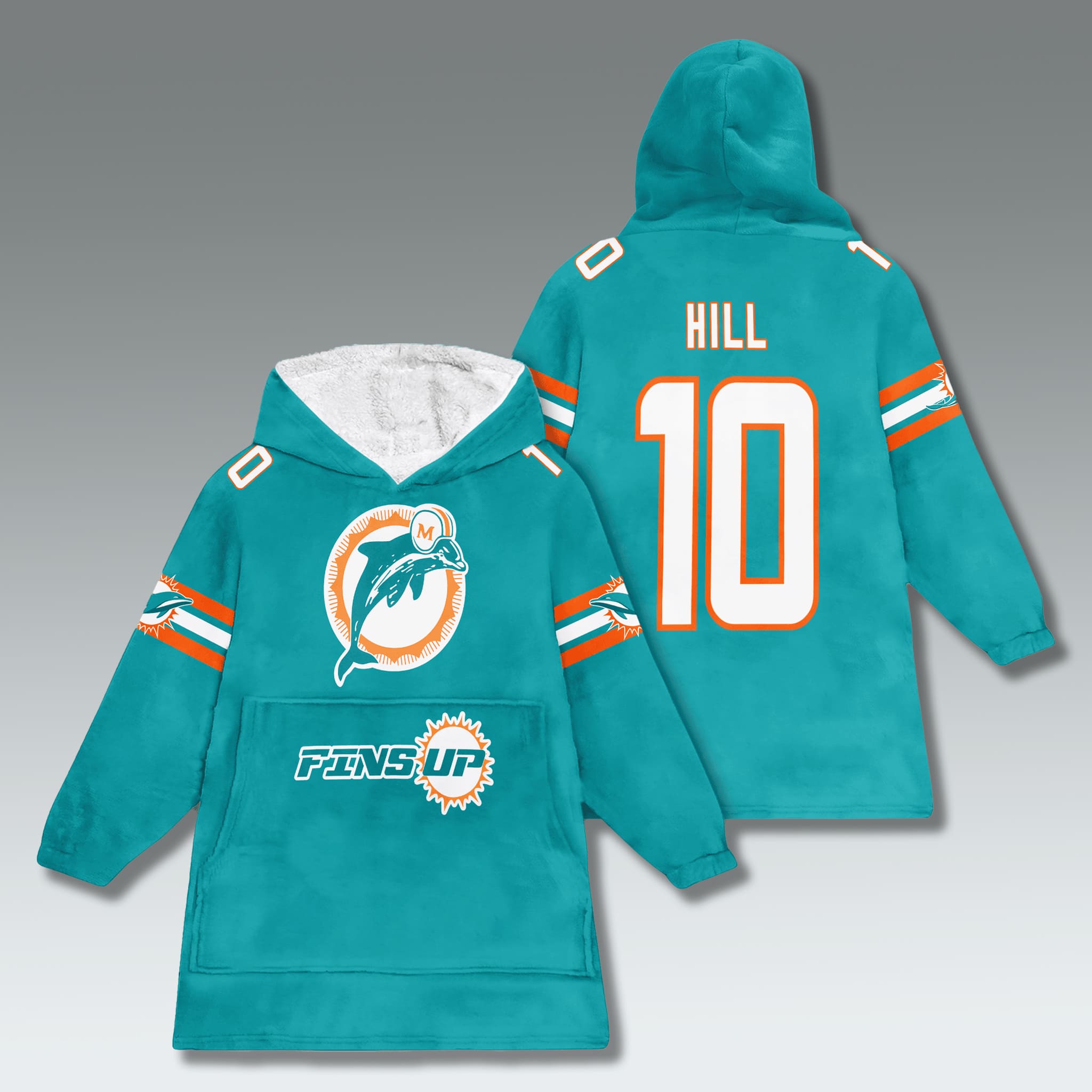 Dolphins Fins Up Blanket Hoodie – Warm Turquoise Hoodie Honoring Tyreek Hill #10