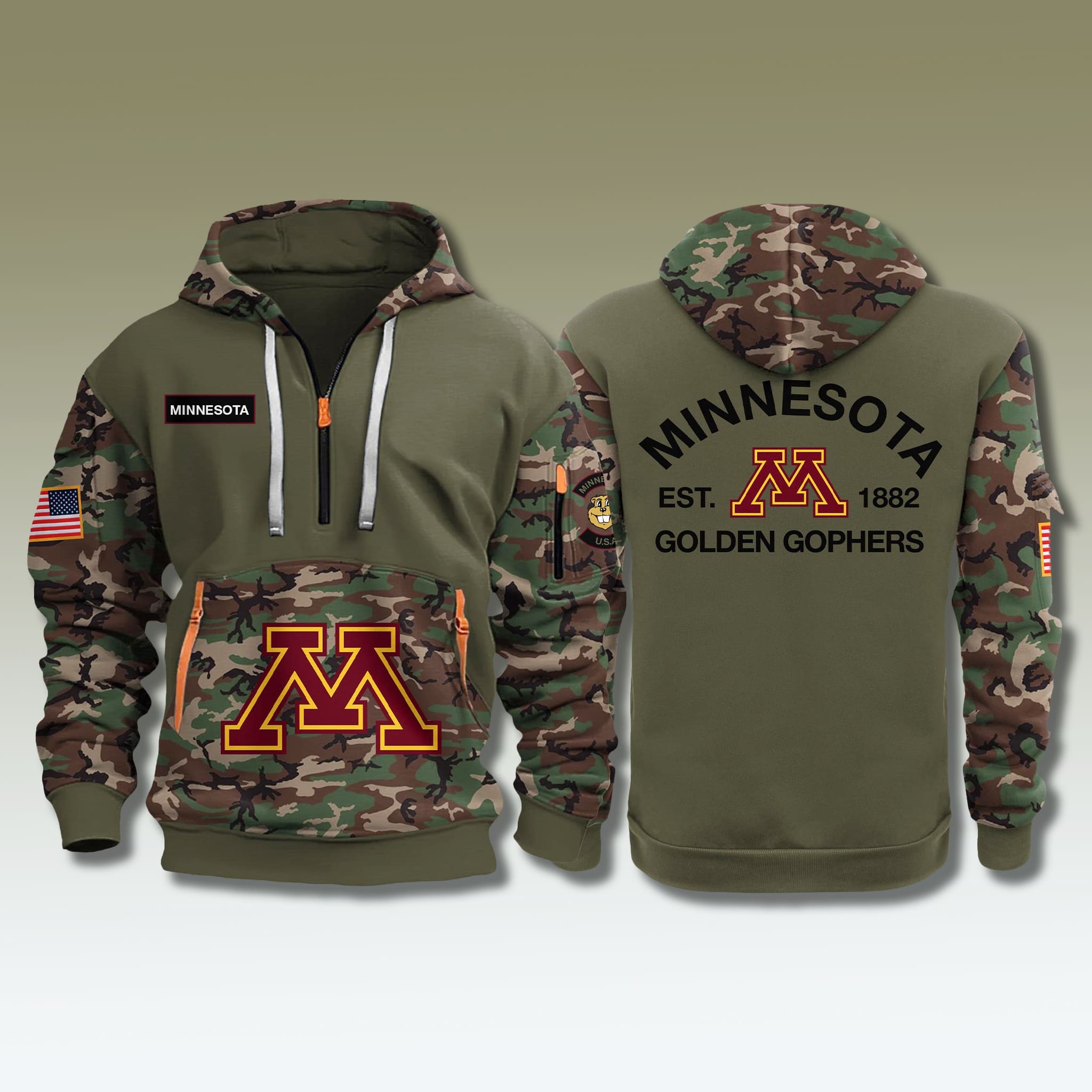 Minnesota Golden Gophers Military Camo Quarter Zip Hoodie 2025 – Show Your Unbreakable Team Spirit