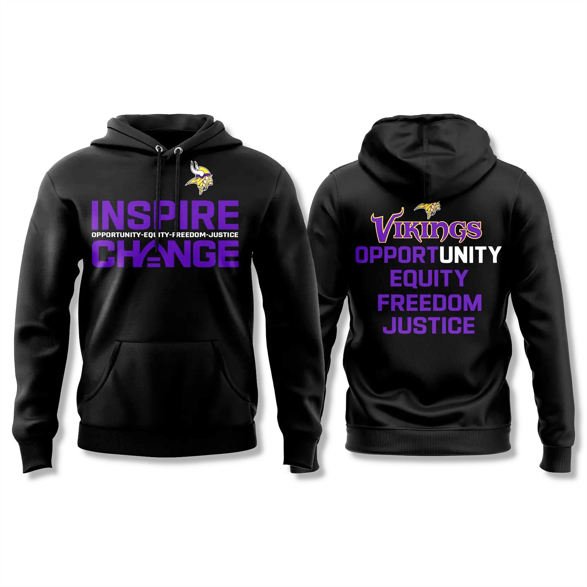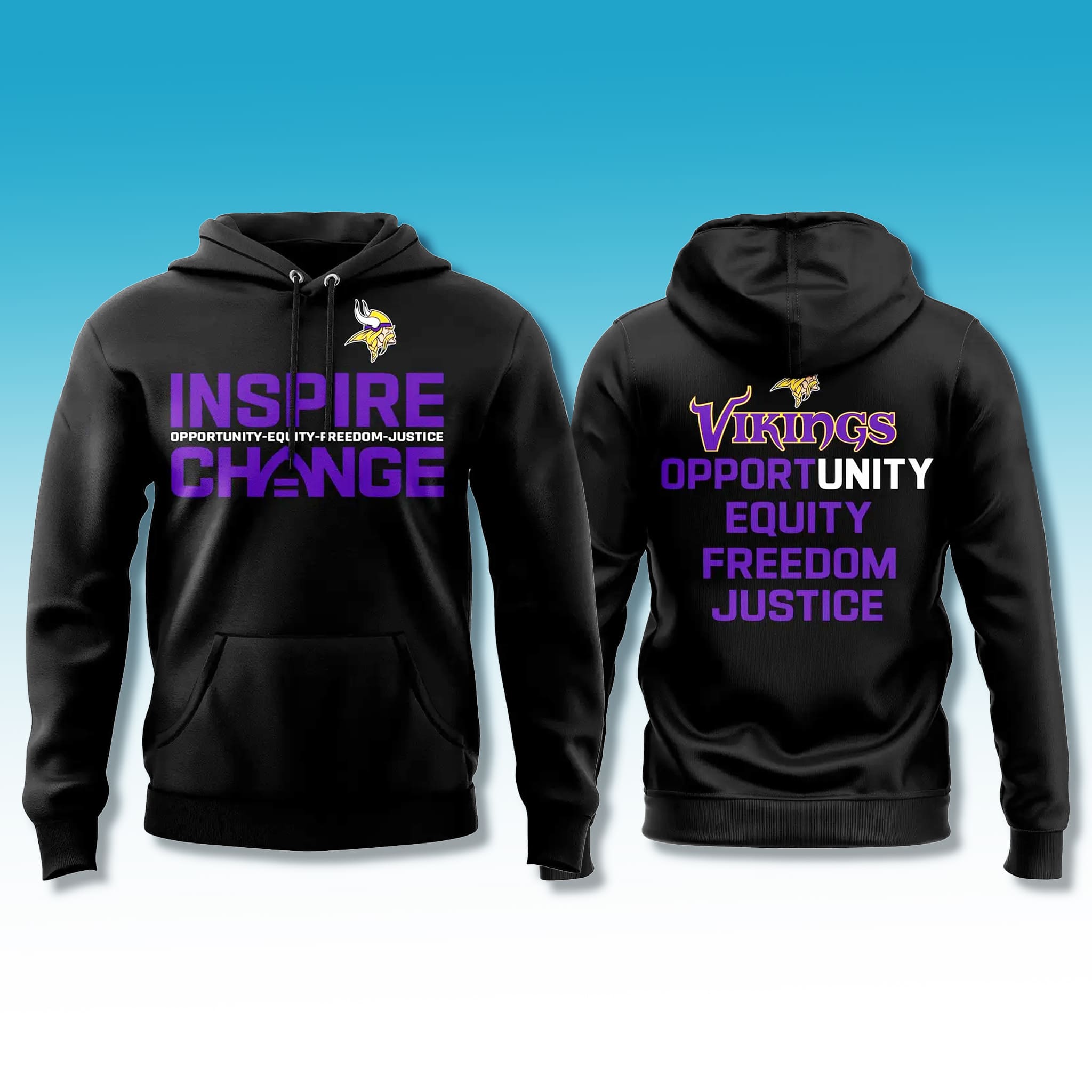 The Vikings Inspire Change Hoodie 2025 is more than just sportswear – it is a symbol of community strength and shared understanding. Inspired by the fearless warrior spirit of the Vikings, this design highlights the mission of building a more equitable society through core values: Opportunity, Equity, Freedom, and Justice.