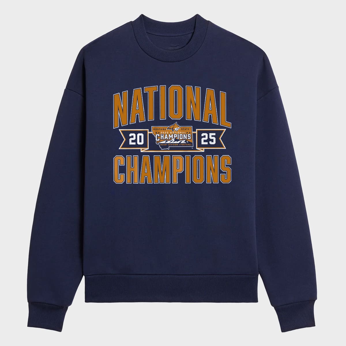 This Montana State 2025 FCS Champions Shirt features a bold vintage-style design, with a signature navy blue background combined with standout gold-orange details. At the center is the large “NATIONAL CHAMPIONS” message, creating a powerful and proud impression. The shirt is available at iFrogtees in multiple sizes and colors for you to choose from.