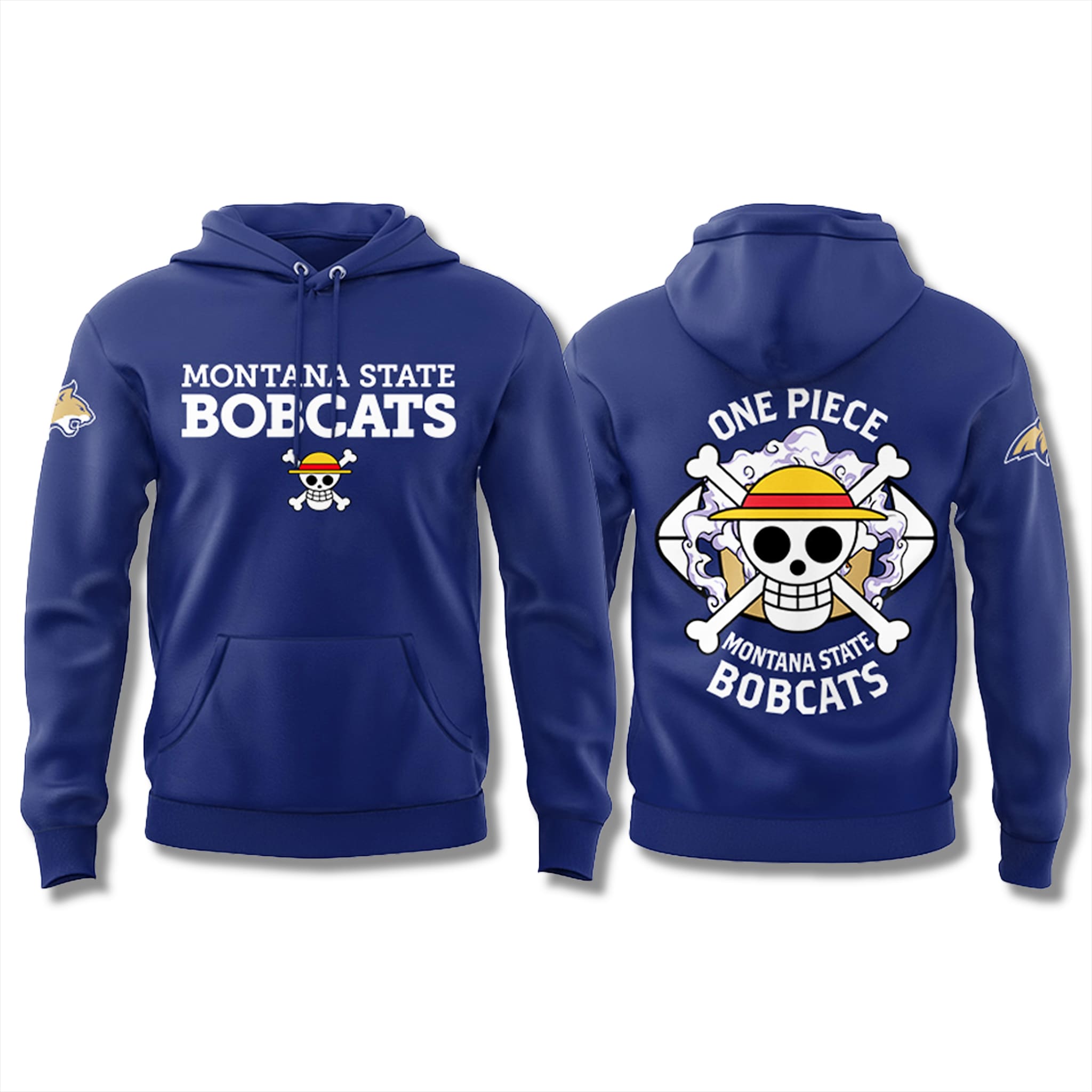 The Montana State Bobcats x One Piece 2026 Hoodie is a standout collaboration item for fans of both the Montana State Bobcats and the legendary manga/anime One Piece by Eiichiro Oda. The design is inspired by the spirit of “treasure hunting” and the relentless journey of Luffy and the Straw Hat crew, perfectly combined with the strong, wild identity of the Bobcats – the mountain wildcat symbol of Montana State, representing resilience and the hunger for victory.