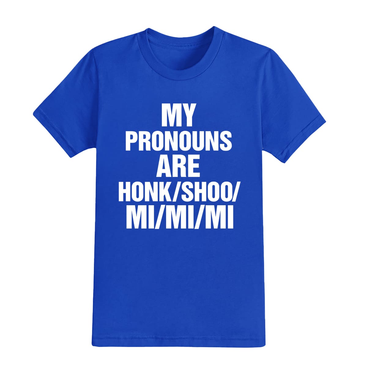 The My Pronouns Are Honk Shoo Mi Mi Mi Shirt was born for you, those who love sleeping and humor. Inspired by the viral TikTok trend mimicking classic cartoon snoring sounds (“Honk” when inhaling, “Shoo” and “Mi Mi Mi” when exhaling), this shirt is a humorous way to identify yourself. It’s a hilarious “trolling” fashion item that brings laughter and perfect relatability to anyone who’s always craving sleep.