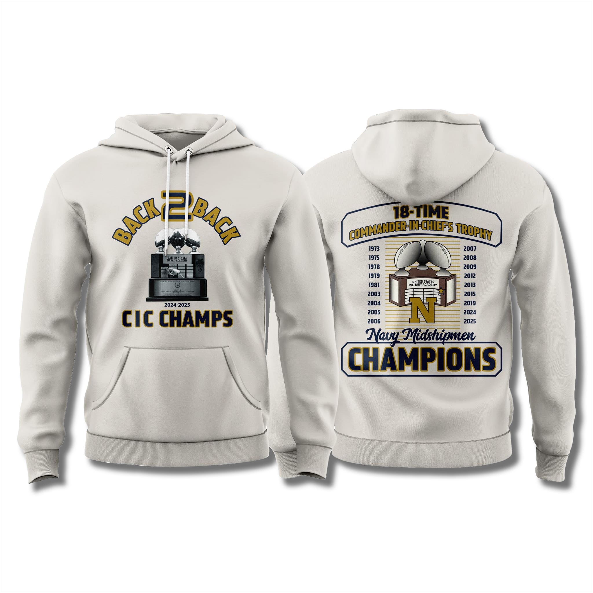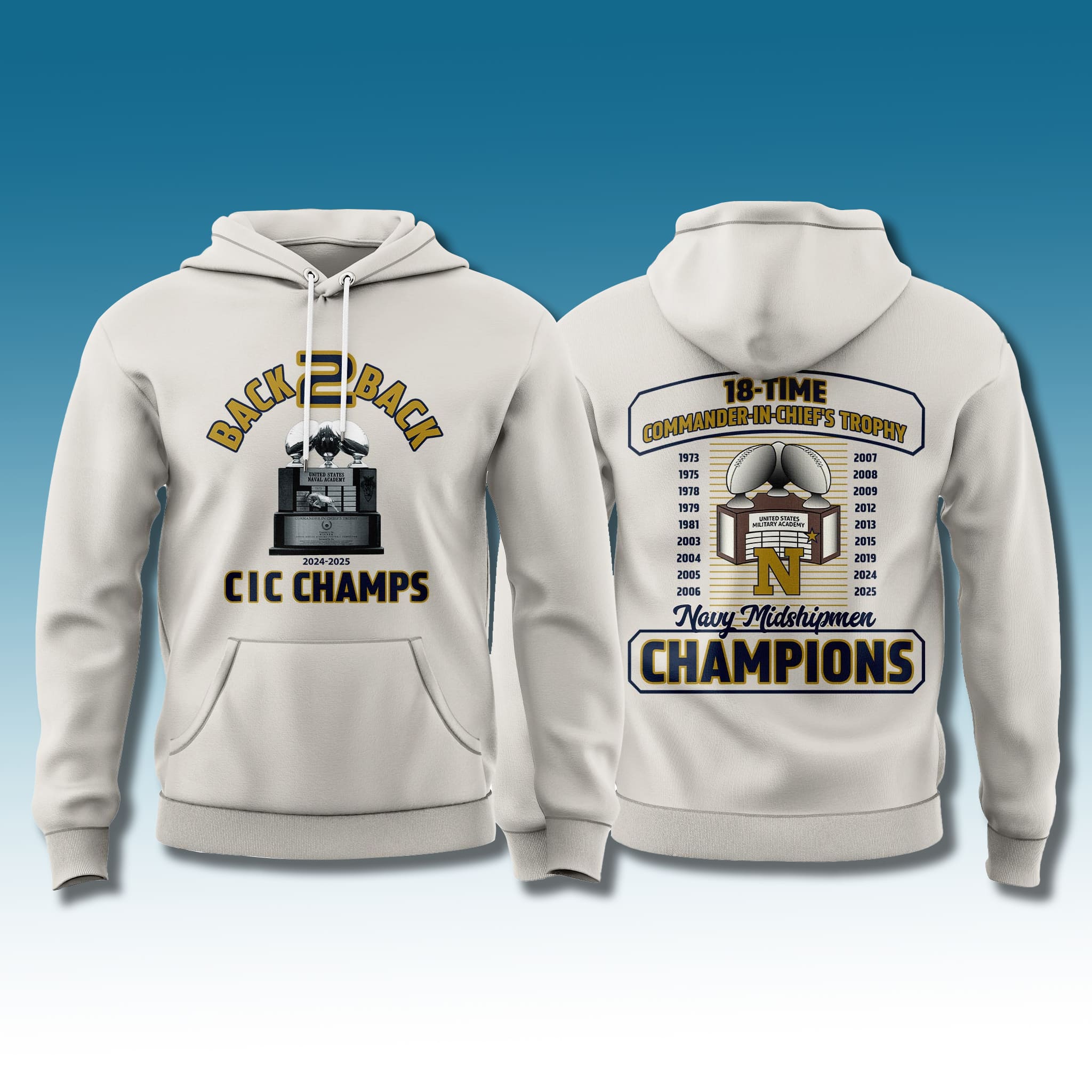 Navy Midshipmen 2025 Commander-in-Chief’s Trophy Champions Hoodie – Back-to-Back Champions, Navy’s Enduring Legacy on Sea and on the Field!