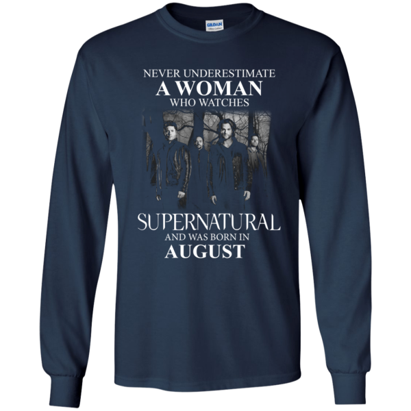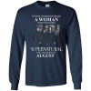 Never Underestimate A Woman Who Watches Supernatural And Was Born In August shirt, tank top, long sleeve, sweater