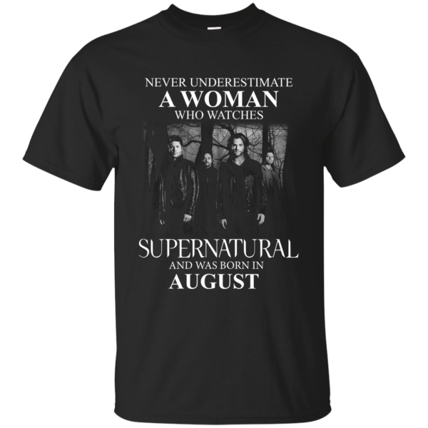 Never Underestimate A Woman Who Watches Supernatural And Was Born In August shirt
