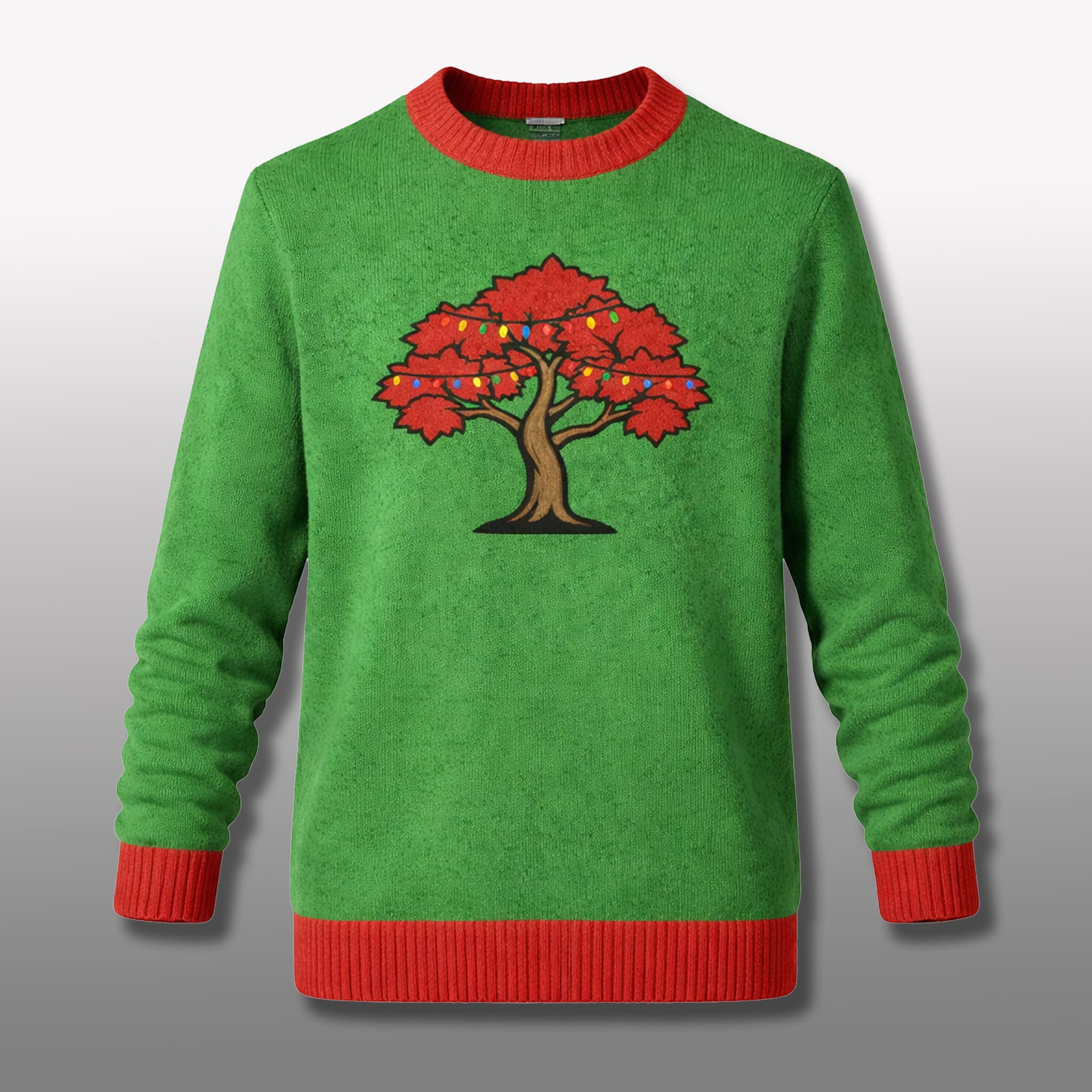 The Jason Kelce Christmas Sweater is an adorable holiday sweater worn by Jason Kelce in the special Christmas episode of the New Heights Show. Instead of a traditional Christmas tree, Jason chose a bright red maple tree decorated with multicolored Christmas lights – playfully trolling his Ohio roots while creating a warm, humorous “fall meets Christmas” vibe.