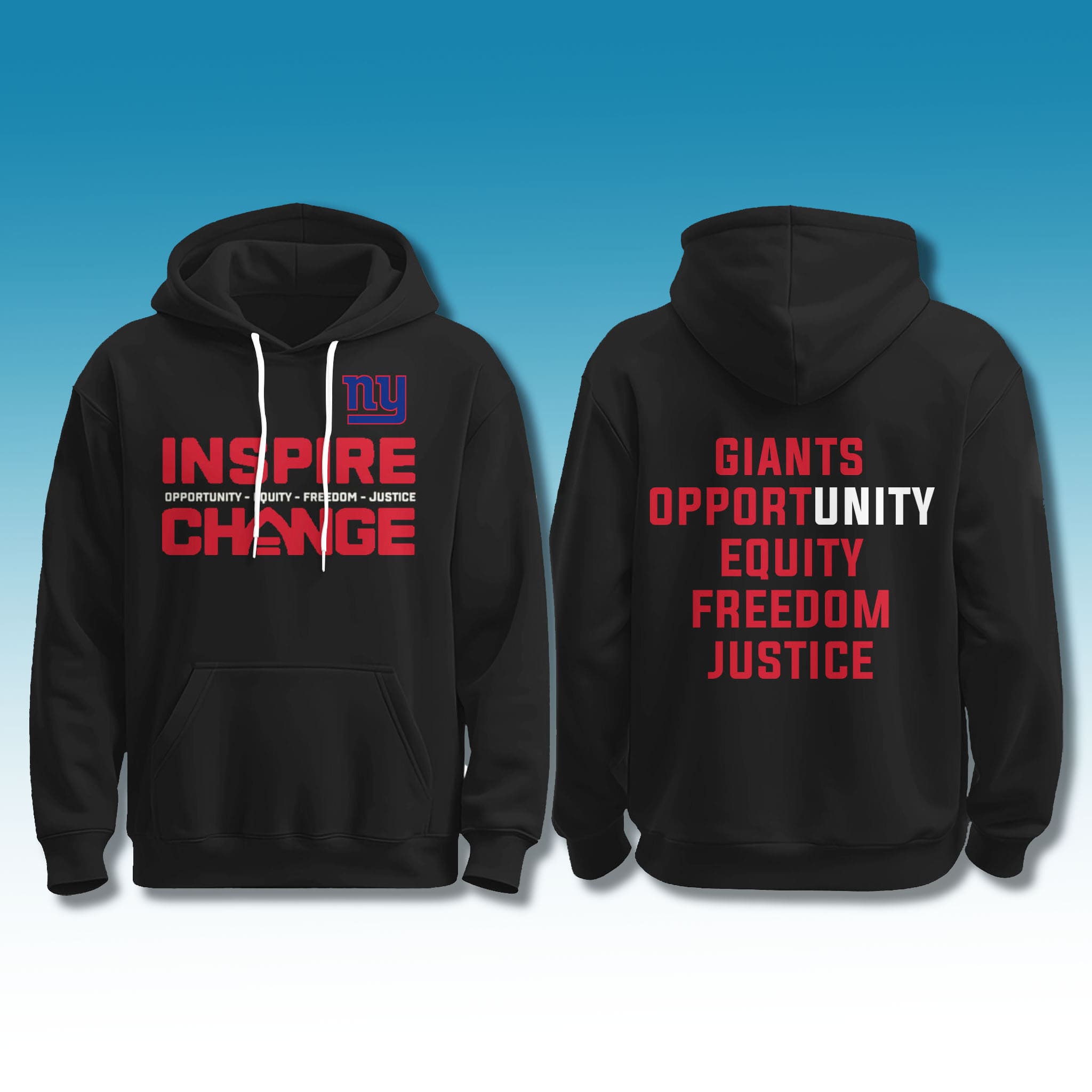 Owning the Giants Inspire Change Hoodie 2025 is a way to embody the spirit of a true “Giant” – not only on the field, but in everyday life. As part of the team’s ongoing commitment to spreading meaningful humanitarian values, this design champions Opportunity, Equality, Freedom, and Justice.