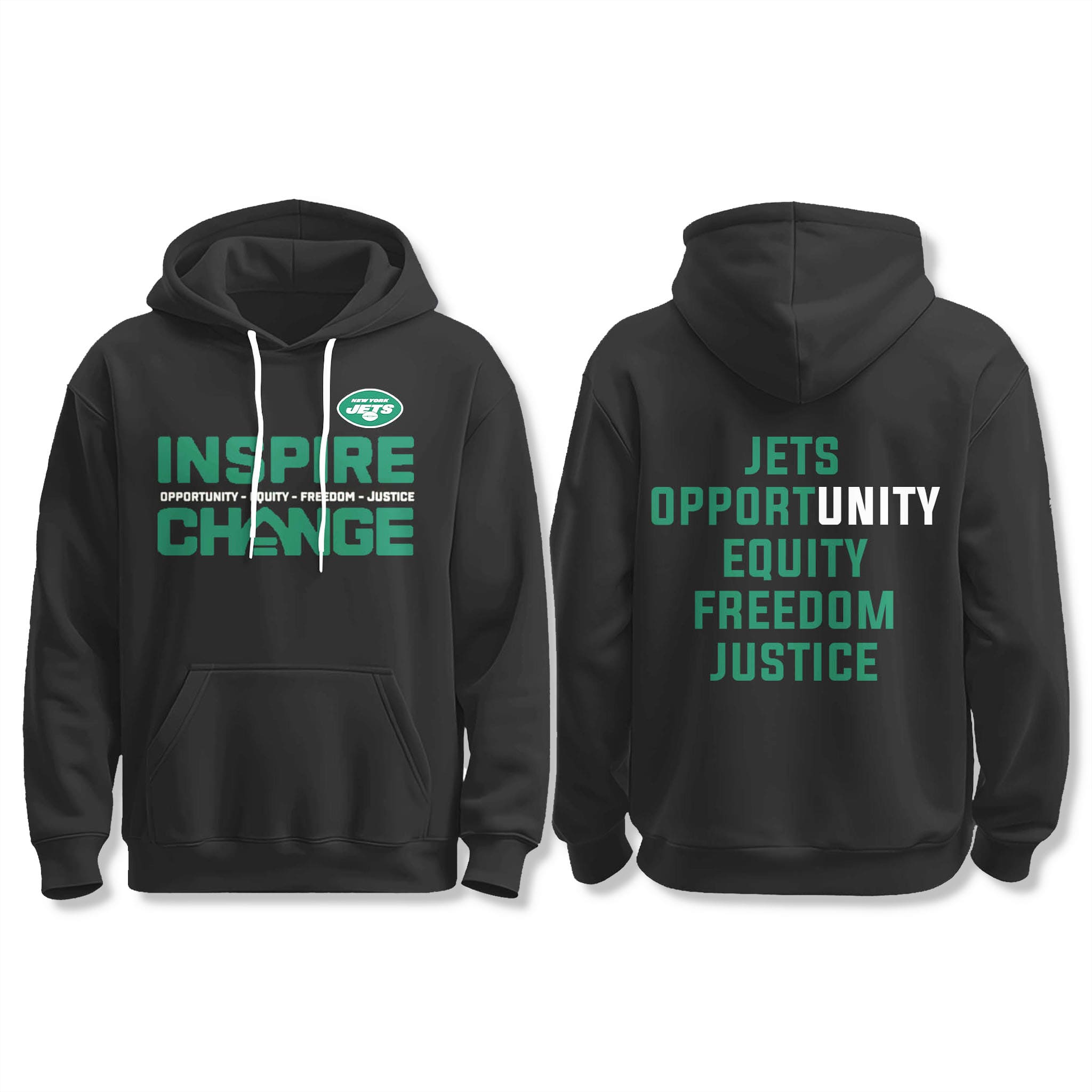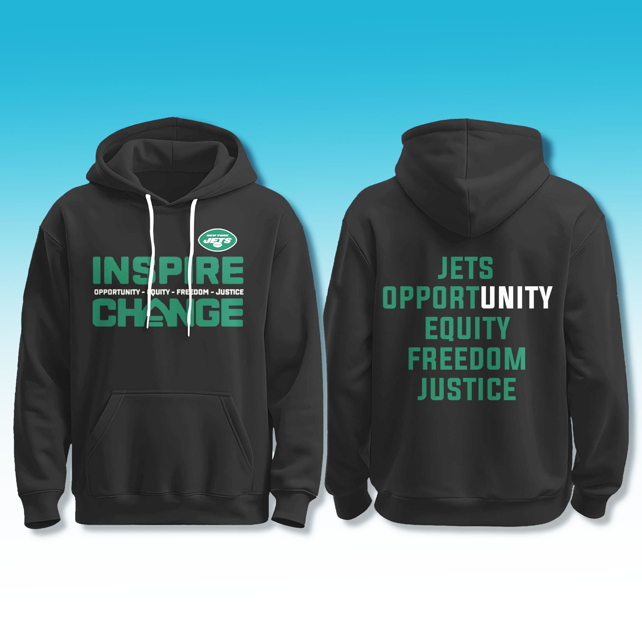 The Jets Inspire Change Hoodie 2025 is not just a fashion item but also a symbol of social responsibility. As part of the “Inspire Change” campaign, this design focuses on promoting core values such as Opportunity, Equality, Freedom, and Justice. Owning this hoodie allows New York Jets fans to express strong support for community initiatives and efforts to create positive social impact.