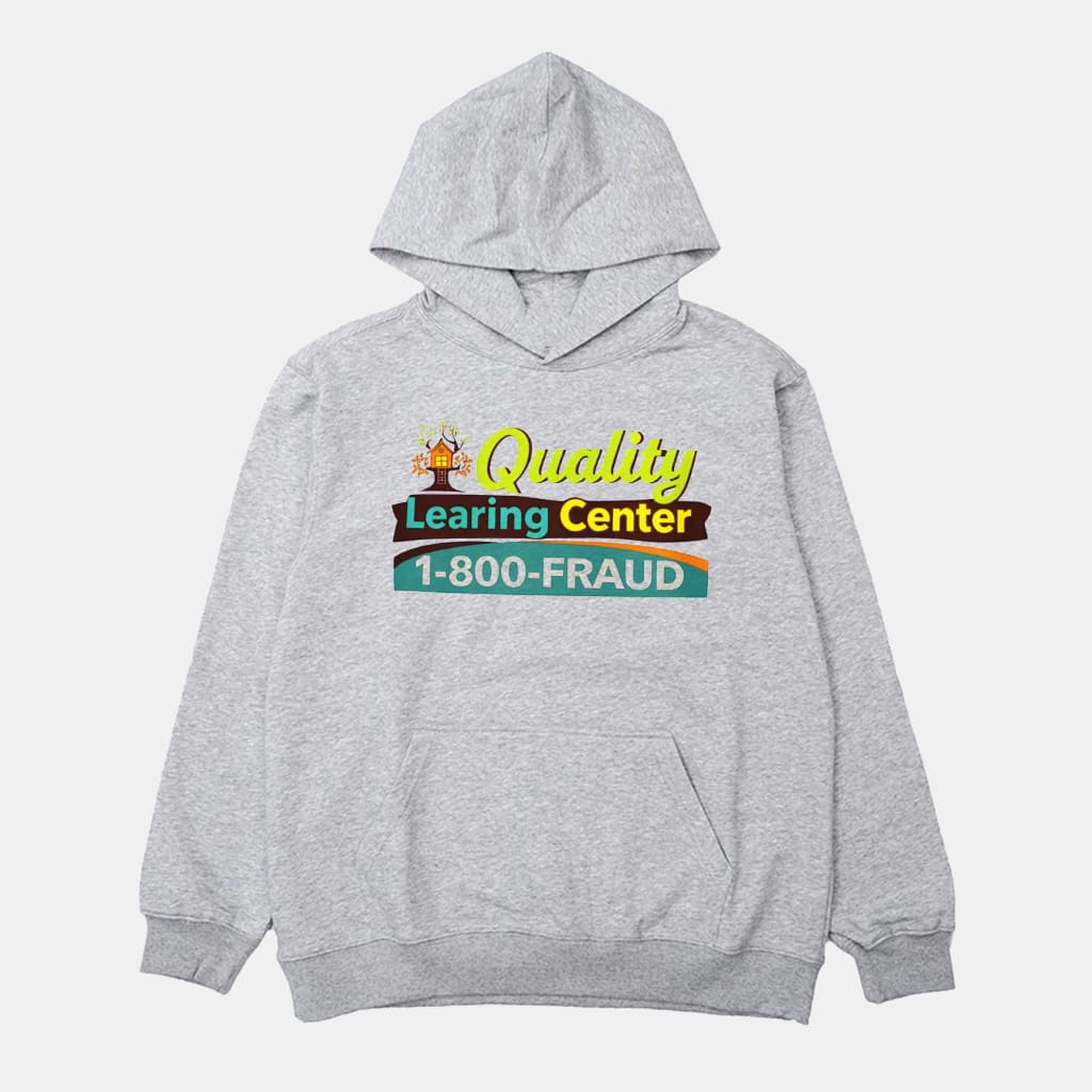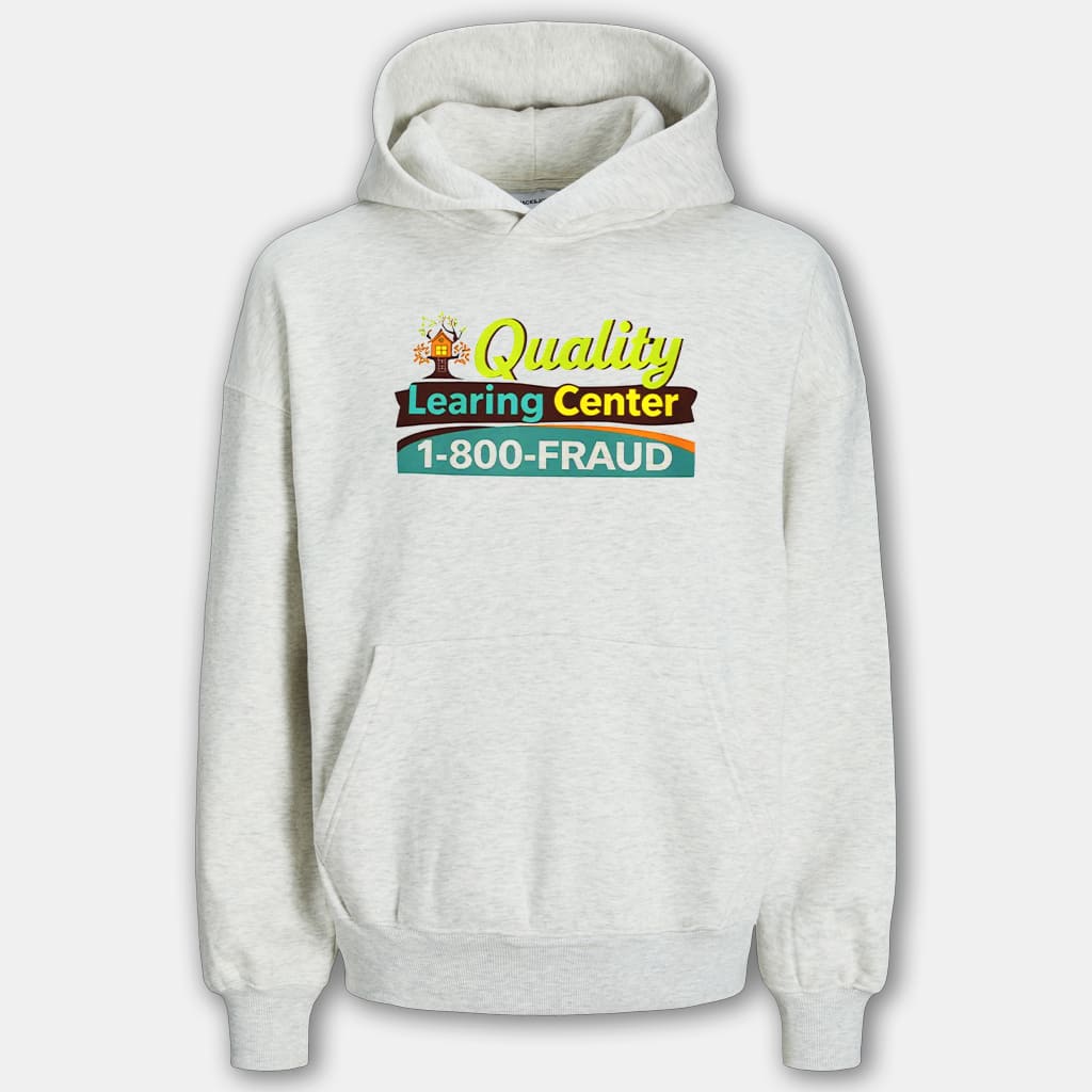 This gray hoodie, with its humor and satire, attracted attention from politicians and online communities, highlighting issues of financial transparency and sparking a new viral wave. The design is clean and eye-catching on a classic light gray base, easy to style for everyday wear. The sharp “Quality Learing Center 1-800-FRAUD” print across the chest clearly delivers the message. You can purchase it in multiple sizes and styles to join this trend at iFrogtees.
