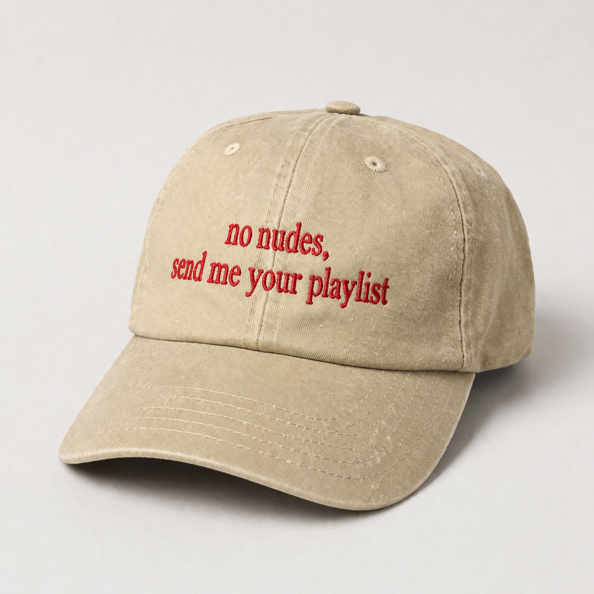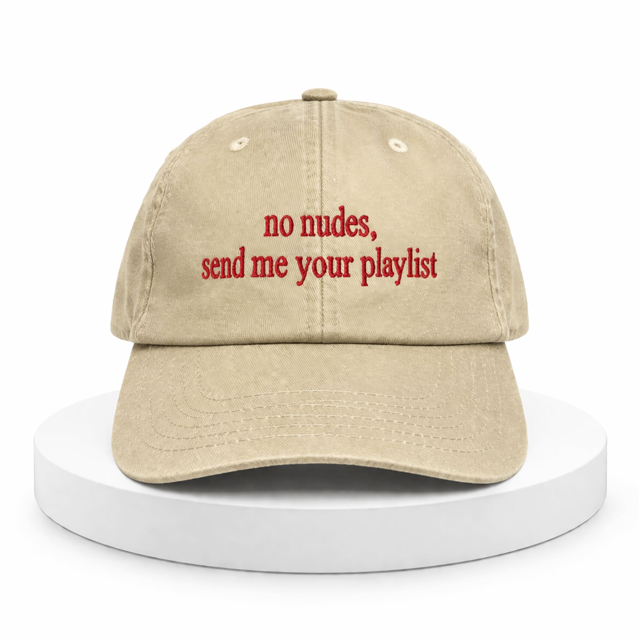 No Nudes Send Me Your Playlist Hat – A Statement Piece for Music Lovers