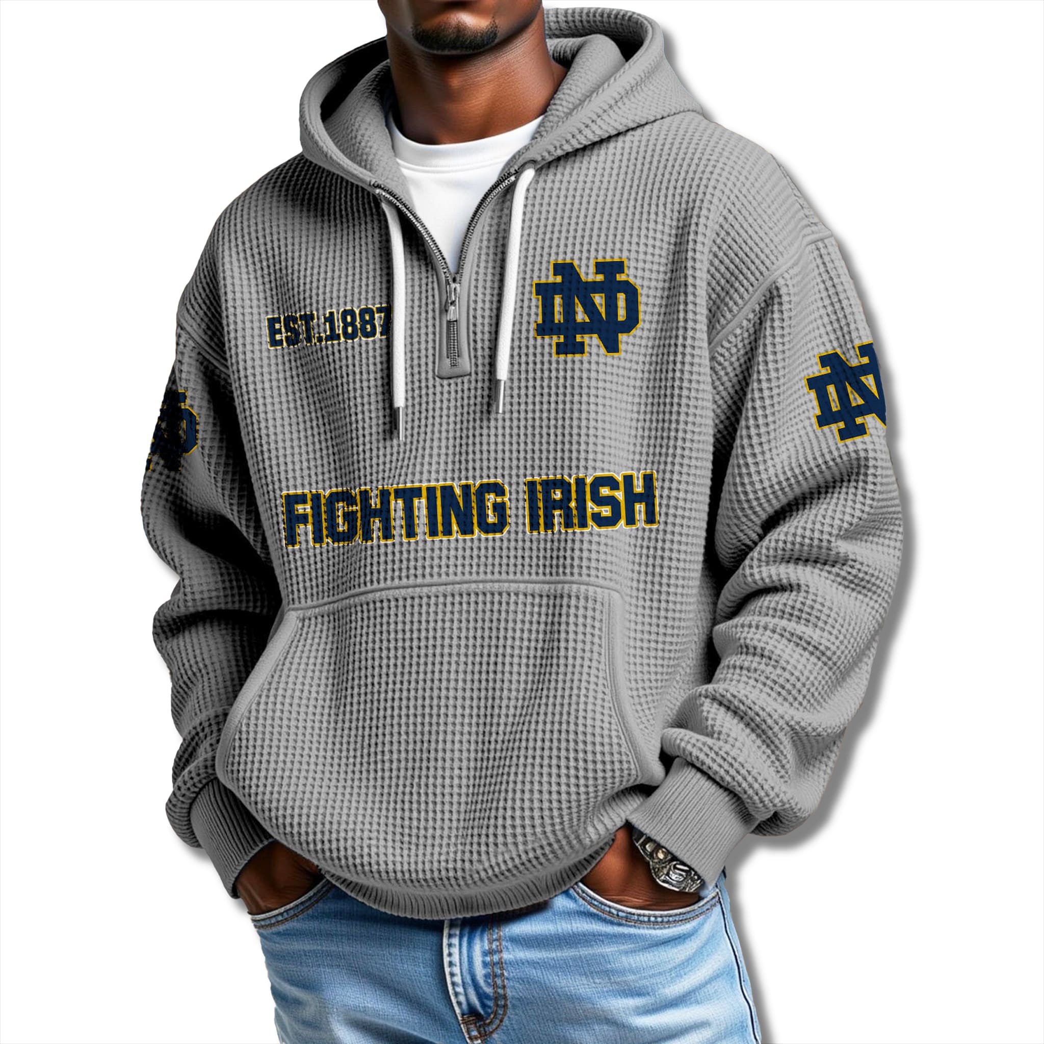 The Notre Dame Football Waffle Quarter Zip Hoodie 2025 embodies the undying fighting spirit of the legendary Notre Dame team. 1887 displayed prominently on the hoodie. Featuring a refined cream-white tone paired with a modern silhouette, this hoodie is the perfect choice for cheering on the Fighting Irish – showcasing the passion and unwavering support for one of the oldest and most respected sports legacies.
