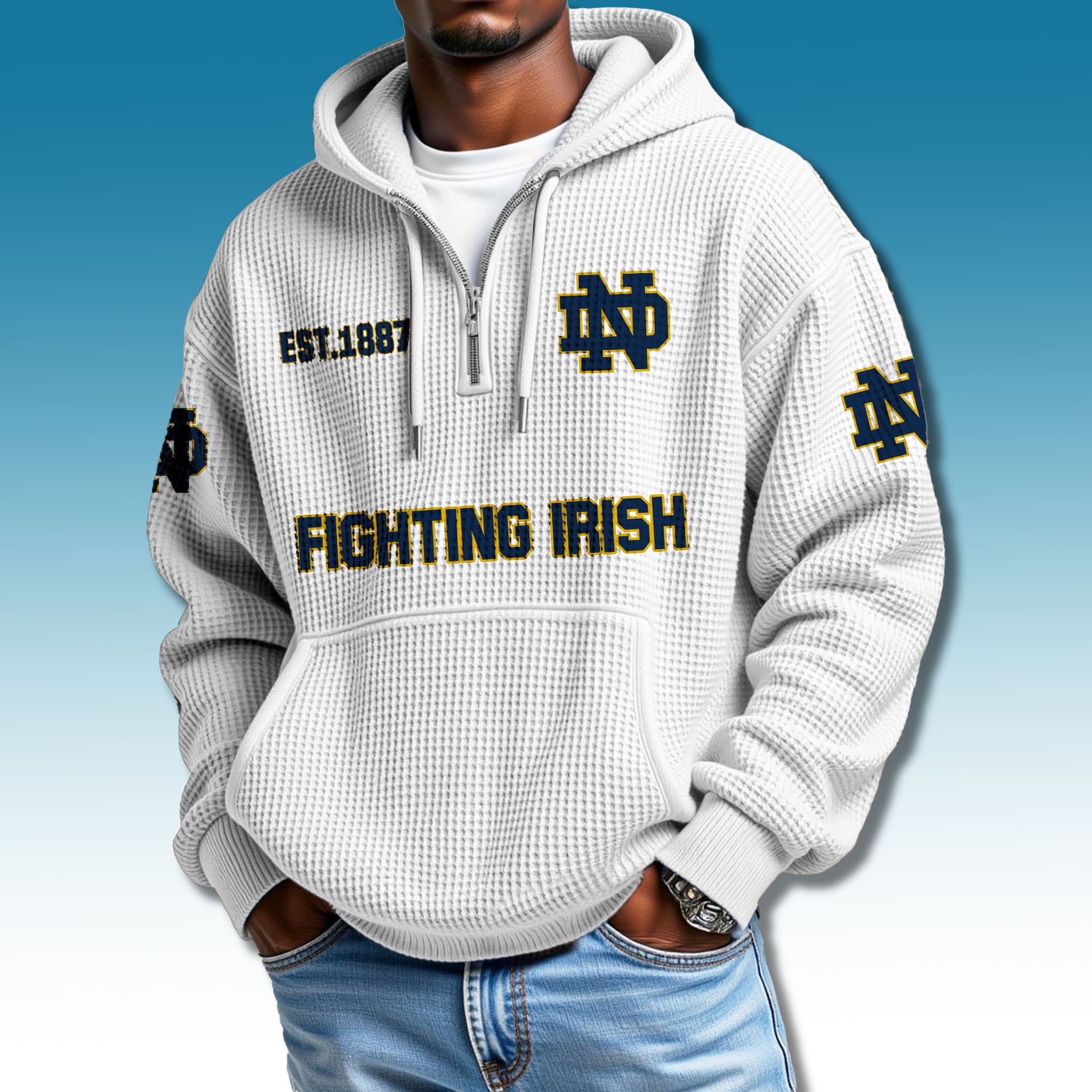 Notre Dame Fighting Irish EST 1887 Waffle Quarter Zip Hoodie 2025 – Unyielding Spirit Shining in White